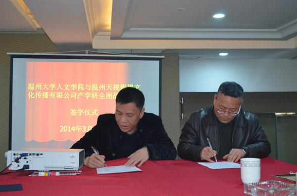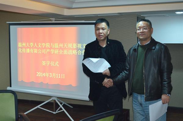 蔡贻象院长与温州天视传媒有限公司董事长黄勇共同签订了产学研全面战略合作协议书,标志着樱花小说