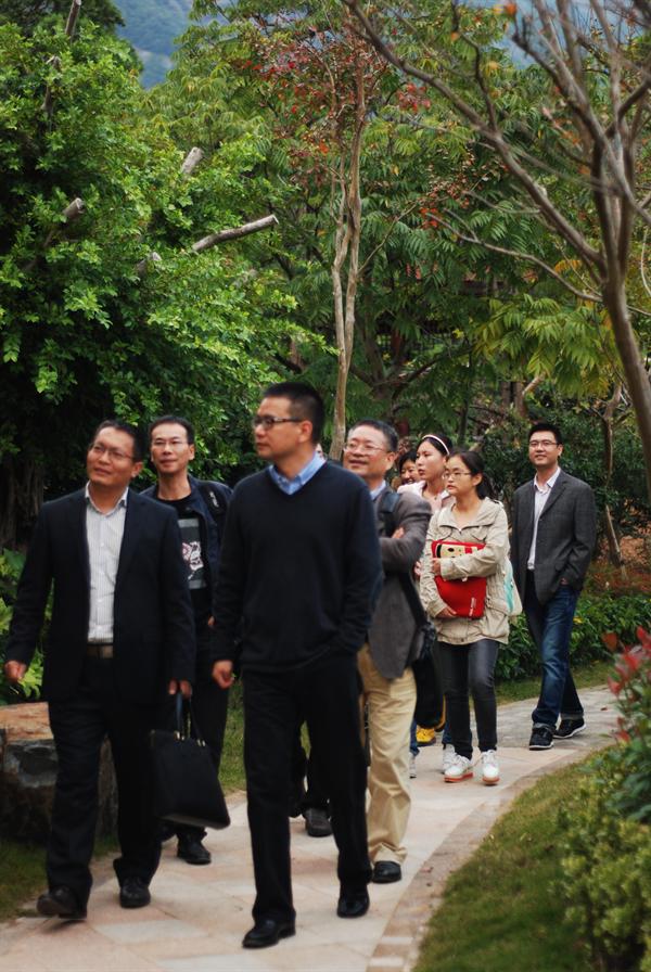 随后,一行人来到环境清幽的会议厅饮茶座谈,李董充满激情地讲述了他的创业故事和园林事业的发展。蔡贻象教授从生活美学的角度提炼和总结了李董的创意农业的三个层次;叶育登老师和张信国老师强调了盈利模式在文化创意产业中的关键作用。夏雨禾老师从文化消费的视角,谈了理论学习研究和民间实践样本的对接。老师们的精彩发言,使原来一直认为特别枯燥的理论学习和研究,变得鲜活形象起来,颇有茅塞顿开之感。在场的研究生们都十分兴奋地谈了自己的考察心得。讨论和交流持续了近3个小时,热烈而深入,俨然成了文化创意学研究生的第二课堂。