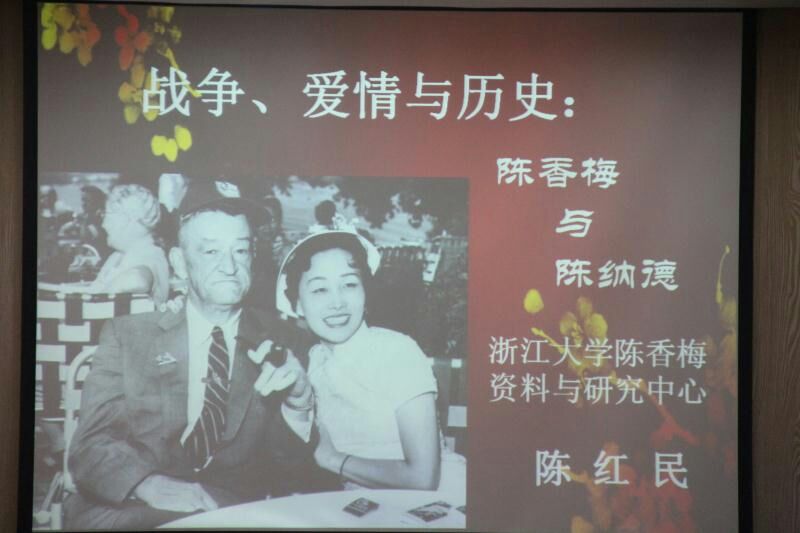 讲座伊始,陈红民教授讲述了浙大与陈香梅的渊源。然后结合当时中国所处的历史时空环境,对陈香梅的生平及家世进行了简要介绍。认为抗日战争对于中华民族来说是一个巨大的灾难,但对于在此环境下生存的个体有时则不尽然。身为美国陆军航空飞行员的陈纳德在全面抗日战争爆发后受邀来到中国,帮助中国组建和训练空军,1942年担任美国驻华空军特遣队准将司令。而就在1944年初冬,陈香梅以中央通讯社昆明分社记者的身份第一次采访了陈纳德,两个人的浪漫爱情就此萌生,在此之后,两人打破世俗的藩篱和家庭的阻拦于1947年成婚。陈纳德因病去世后,陈香梅移居华盛顿,通过演讲、写作、加入政党等方式站稳脚跟,长期活跃在美国政坛,被誉为“中美民间大使”。陈红民教授指出,自上世纪八十年代后,陈香梅往来于海峡两岸,对于加强两岸交流发挥了重要作用,同时,陈香梅热心于中国的经济建设、文化教育事业,为中国发展建言献策,是促进大陆改革开放的民间使者。