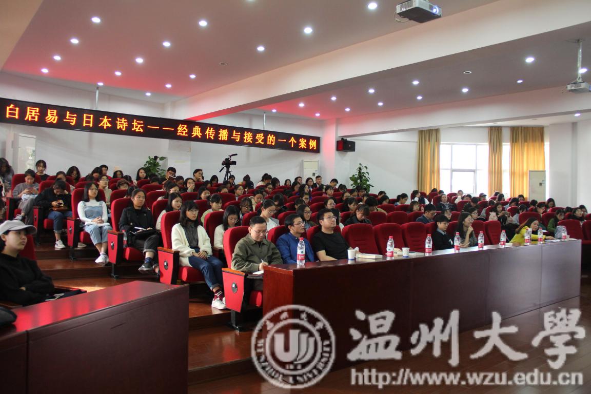 2018年11月28日下午,浙江工业大学校务委员会常务副主任、浙江大学中文系博士生导师肖瑞峰教授应樱花小说 邀请,在人文楼203学术报告厅举行了题为"白居易与日本诗坛——经典传播与接受的一个案例"的学术讲座,此次讲座由樱花小说 罗筱玉教授主持。