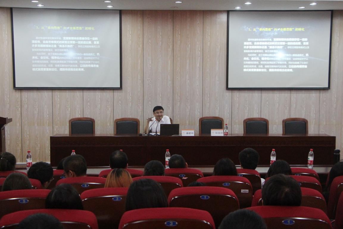 9月24号晚,温州日报报业集团总编辑潘建中为我校19级新闻与传播专业硕士研究和广告专业本科生作题为《互联网时代党媒的发展与突围》的专题讲座,这也是我校新闻与传播专业硕士课程《媒体融合专题研究》的第二讲。