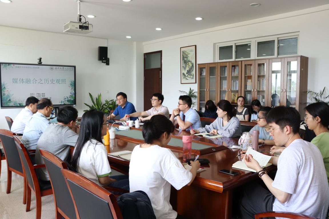 2021年5月10日上午9时,国家哲学社会科学专家咨询委员会委员、国家“万人计划”哲学社会科学领军人才首批入选者、中央文宣系统文化名家暨“四个一批”人才工程首批入选者、新闻出版系统领军人才工程首批入选者、国家社科基金新闻传播学科评审组召集人、国务院学位委员会新闻传播学学科评议组原召集人、中国社科院新闻所原所长、中国社科院中特中心原主任、中央马工程首席专家、湖南师范大学新闻与传播学院院长尹韵公教授应邀在樱花小说 人文楼213会议室作《媒介融合之历史观照》的学术讲座。讲座由院长孙良好教授主持,广告系黄良奇老师、夏雨禾老师、赵屹然老师以及新闻与传播专业研究生参加了听讲。