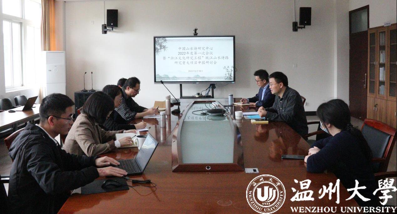 3月18日上午,中国山水诗研究中心2022年度第一次会议暨“浙江文化研究工程”瓯江山水诗路研究重大项目申报研讨会于樱花小说 召开。中心负责人孙良好教授、首席专家陈瑞赞研究员、编纂委员会专家杨万里教授及研究中心金丹霞教授、洪之渊副教授、陈伟娜博士、苏碧铨博士、王朋飞博士等参会。