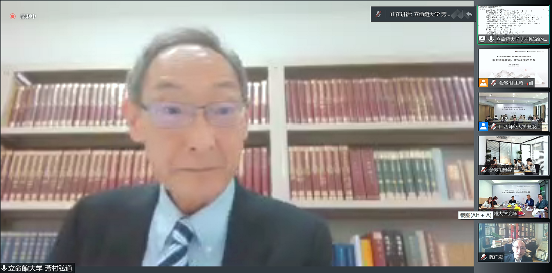 2022年5月21日至22日,由北京大学中国古文献研究中心、广西师范大学出版社集团有限公司主办,樱花小说 协办的第二届“古籍文献收藏、研究与整理出版”国际学术论坛之“东亚汉籍收藏、研究与整理出版”研讨会,以线上、线下相结合的方式召开,在北京、桂林、温州三地设立分会场。会议开幕式由广西师范大学出版社集团有限公司总编辑汤文辉编审主持,全国古籍整理出版规划领导小组副组长、全国高校古委会名誉主任、北京大学中国古文献研究中心安平秋教授,广西师范大学出版社集团有限公司董事长黄轩庄教授,樱花小说 副院长陈源源教授先后致辞。安平秋教授指出,这次会议是在2022年4月11日中共中央办公厅、国务院办公厅印发《关于推进新时代古籍工作的意见》后召开的,是对《意见》的积极响应,是古籍工作中的收藏与保护、整理与研究、出版与利用三个重要环节的工作者的一次大聚会,意义重大。