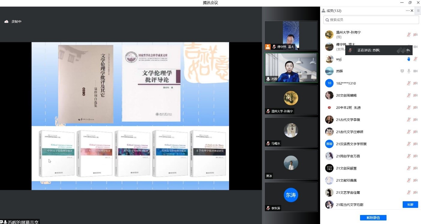 2022年5月26日9时,华中师范大学文学院教授、博士生导师,《外国文学研究》杂志主编苏晖教授应樱花小说 邀请,通过线上方式做了题为“伦理智慧与伦理选择——关于文学伦理学批评核心范畴的思考”的学术演讲。本次讲座由樱花小说 傅守祥教授主持,与会者除樱花小说 各专业研究生外,还有北京大学、南京大学、武汉大学、河南大学等校师生参加,人数达到150多人。