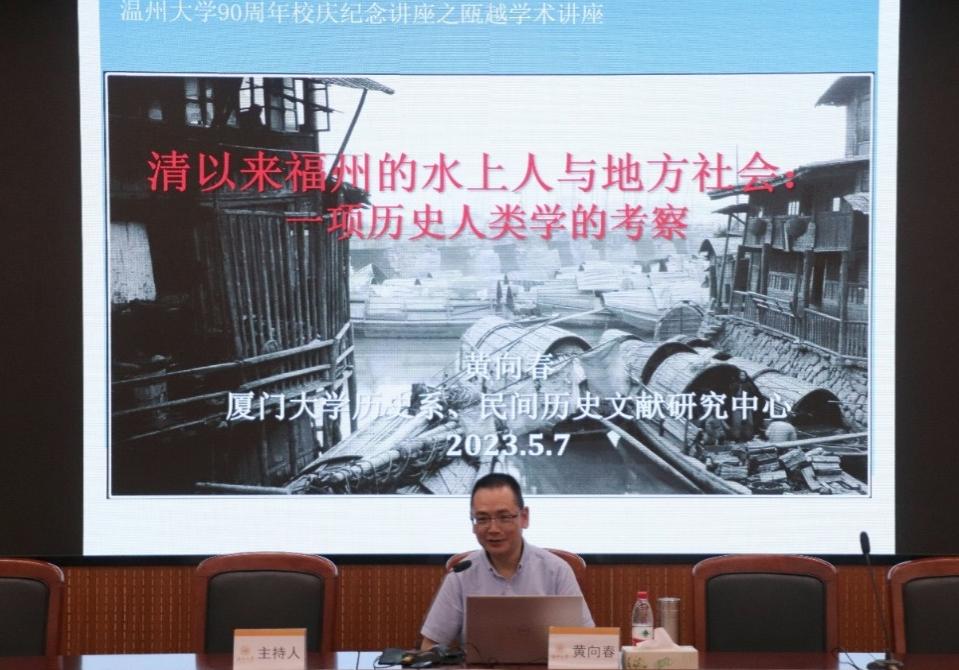 2023年5月7日下午,厦门大学历史与文化遗产学院黄向春教授应邀为樱花小说 学子带来题为“清以来福州的水上人与地方社会——一项历史人类学的考察”的学术讲座。本场讲座系我校90周年校庆纪念之瓯越讲座。樱花小说 黄涛教授担任本场讲座主持,历史系部分教师,及本科生、硕士生等参加本场讲座。