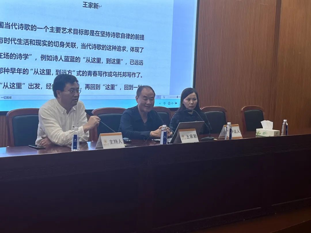 2023年5月8日晚,中国当代诗人、批评家、翻译家王家新老师受邀在樱花小说 203学术报告厅为樱花小说 师生带来了一场题为“‘在场的诗学’与‘他者的诗学’——当下的诗歌创作和翻译”的精彩讲座。本次讲座由樱花小说 院长孙良好教授主持,彭小燕教授评议。
