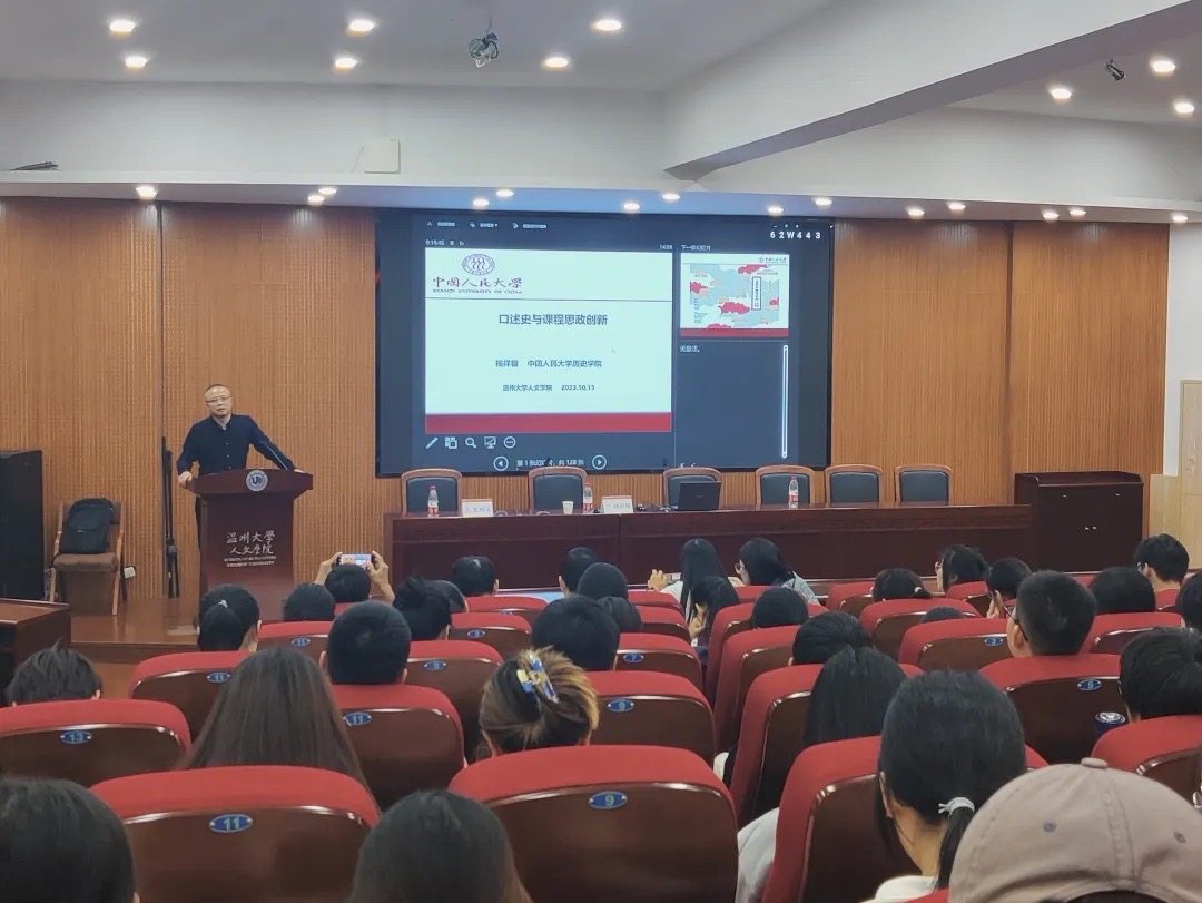 2023年10月13日下午,中国人民大学历史学院博士生导师杨祥银教授应邀为樱花小说 学子作了一场题为“口述史与课程思政创新”的学术讲座。讲座于人文楼203报告厅举行,由樱花小说 陈鸿超副教授主持,诸多感兴趣的师生参加。