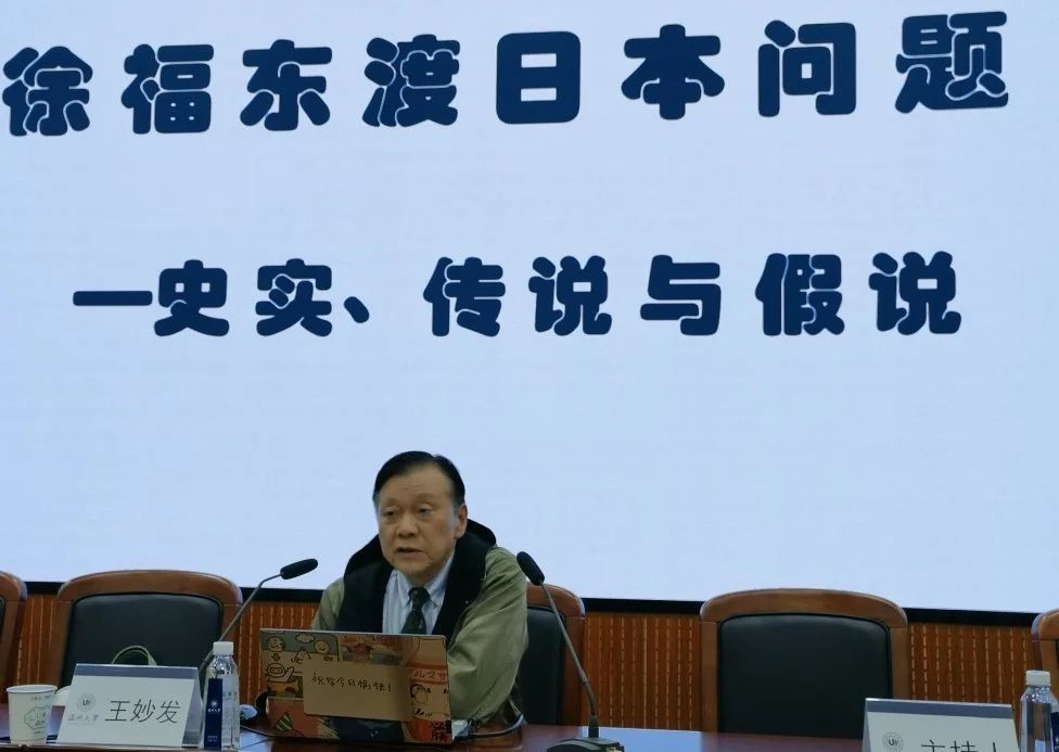 2023年11月27日晚,日本和歌山大学名誉教授,复旦大学中国历史地理研究所教授、博士生导师王妙发老师应邀莅临樱花小说 ,作题为“徐福东渡日本问题:史实、传说与假说”的学术讲座。讲座由樱花小说 历史系祁刚老师主持,历史系部分教师,各专业本科生、研究生共计90余人参加本次活动。