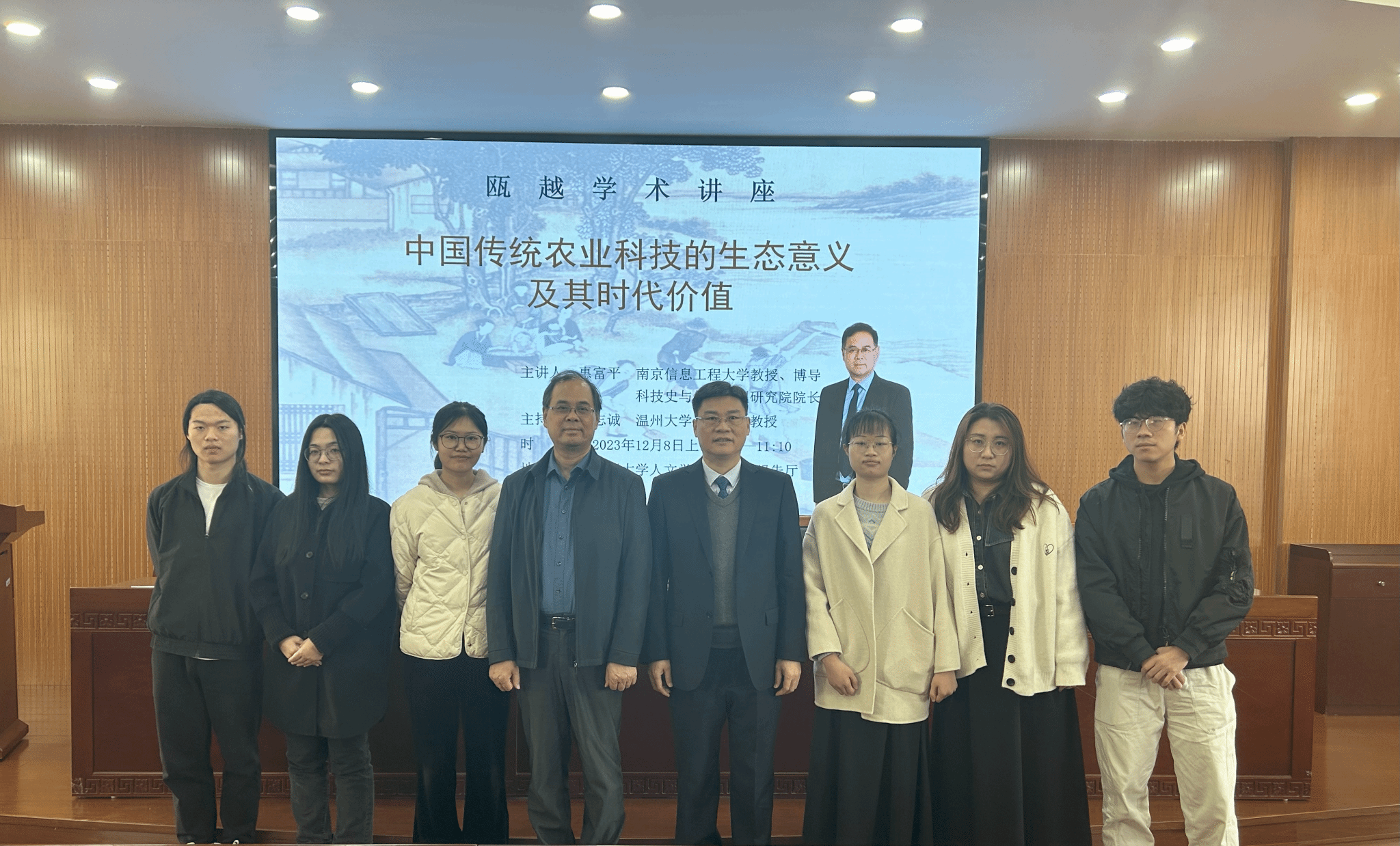 2023年12月8日上午,南京信息工程大学科技史与气象文明研究院惠富平教授应邀在樱花小说 学术报告厅举行了题为《中国传统农业科技的生态意义及其时代价值》的学术讲座。本次讲座由樱花小说 邱志诚教授主持,历史学及相关专业本科生、研究生40余人参加了讲座。