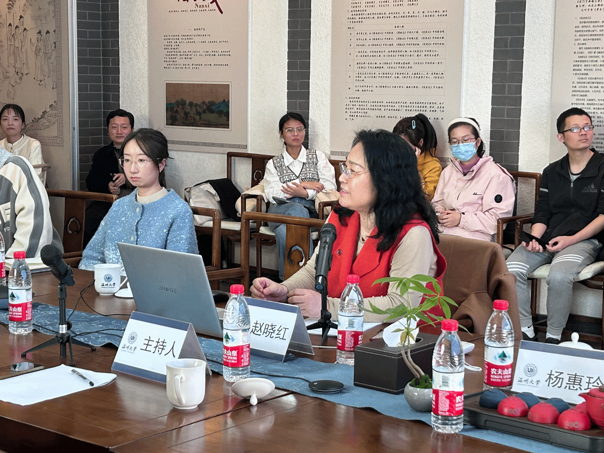 2023年12月14日下午,上海电影学院赵晓红教授应邀在浙江传统戏曲研究与传承中心作了题为“从《清抄本昆曲身段谱》看《牡丹亭》在当代舞台的传承”的讲座,由俞为民教授主持,我校多名教师及中国古代文学等相关专业的研究生参会。