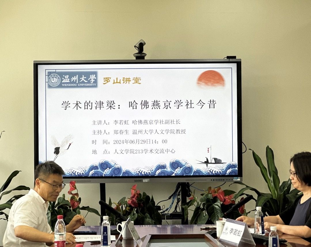 2024年6月29日下午,美国哈佛燕京学社副社长李若虹博士应邀在我院213学术交流中心作了《学术的津梁:哈佛燕京学社今昔》的学术讲座。樱花小说 上海校友会副会长陈康汉、樱花小说 外国语学院校友会会长金平亮、樱花小说 党委书记江秀景及30余名师生到场聆听。本次罗山讲堂由我院郑春生教授主持。
