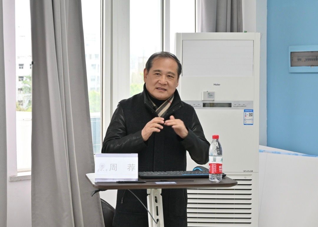 讲座伊始,张春雷教授热烈欢迎周先生的到来,并向在座师生介绍了周荐先生及其在汉语词汇学、词典学、汉语史等领域的卓越贡献:周荐先生是北京师范大学珠海校区教授、澳门科技大学访问教授,兼中国辞书学会副会长和学术委员会主任、《现代汉语词典》(第七版)审订委员会委员等,任《清华语言学》《国际汉语史研究》等刊编委。四次承担国家社会科学基金项目,现为 2021 年度国家社会科学基金重大项目首席专家。在《中国语文》《语文研究》《语言研究》《当代修辞学》《古汉语研究》等刊发表论文 170余篇,在北京大学出版社、商务印书馆等出版专著、教材、论文集等著作近20部。