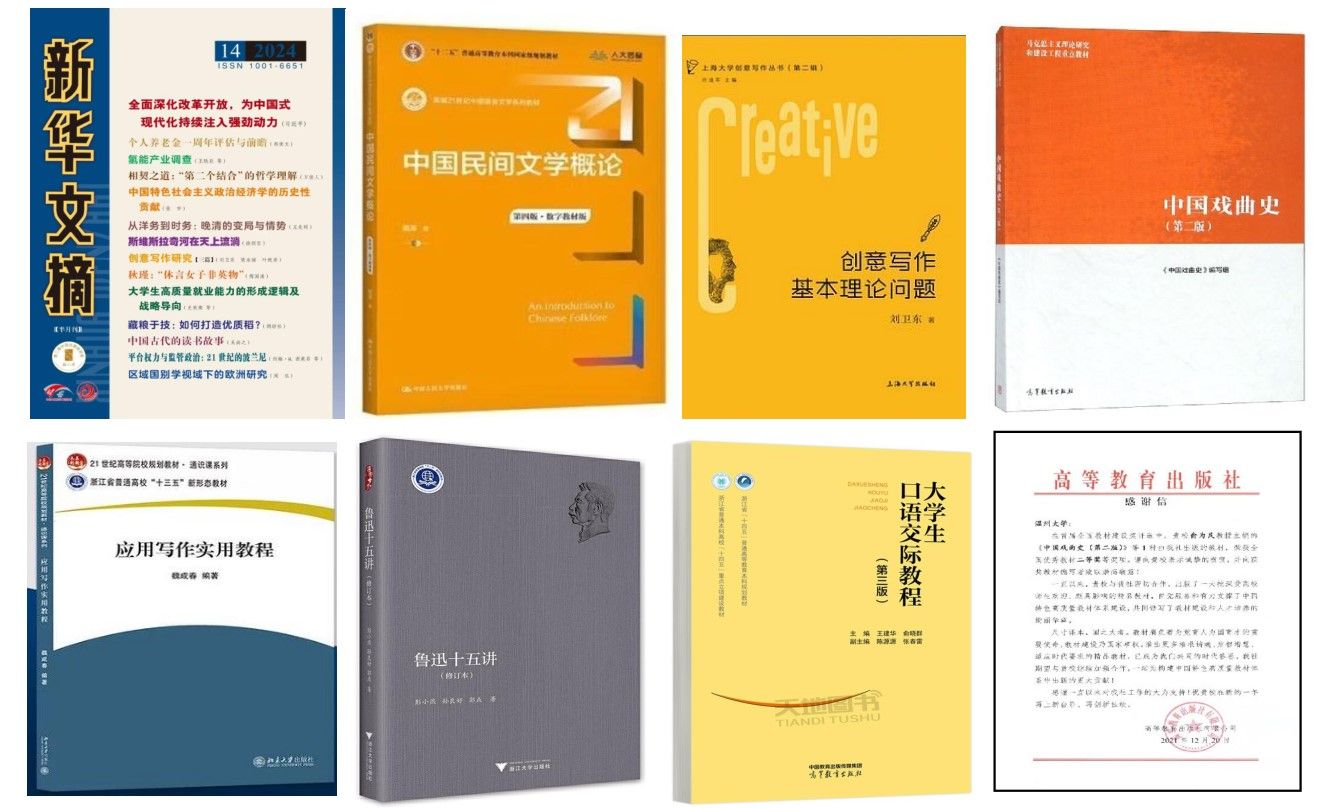 教材建设方面,《中国戏曲史》获得首届全国教材建设奖高等教育类二等奖,《鲁迅十五讲》《大学生口语交际教程》获省新文科重点教材,《应用写作实用教程》获省新形态教材,《中国民间文学概论》获国家级规划教材等。