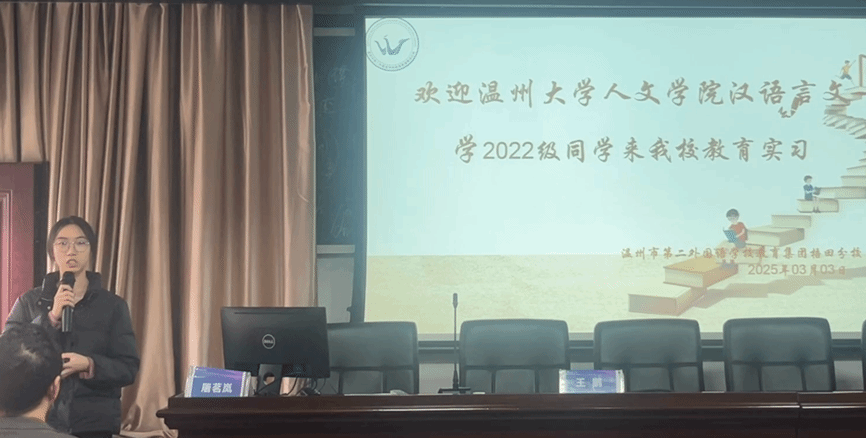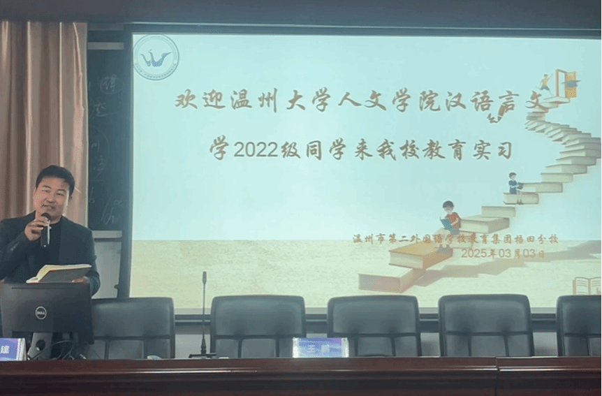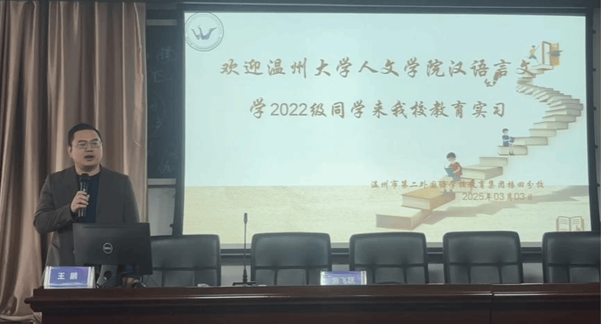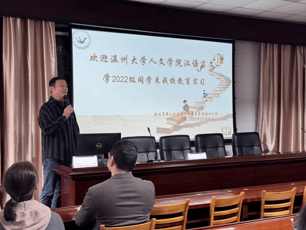 三月,万物复苏,春天一点一点地化开。在这个充满生命的季节里,22中文1班的8位同学迎来了将理论转化为实践的锻炼机会。2025年3月3日,在温州市第二外国语学校教育集团梧田分校与樱花小说 汉语言文学(师范)专业2022级学生教育实习工作启动仪式在温州市第二外国语学校教育集团梧田分校南二楼教师会议室举行。见面会由温州市第二外国语学校教育集团梧田分校教学科研处主任金红蕾老师主持,参与本次见面会的人员有樱花小说 的王鹏副院长、陈柳老师和温州市第二外国语学校教育集团梧田分校校长贾飞跃、副校长陈荣建、指导老师们和全体实习生。