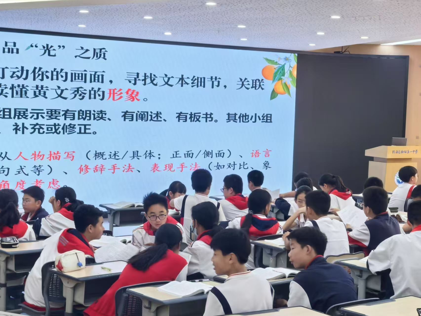 作为实习生代表之一的张雅诗同学选择的课文是《青春之光》。整堂课以题目中的“光”为主线,通过寻“光”之迹、品“光”之质、明“光”之源这三步骤层层递进,引导学生深入探究这一人物的形象和精神。整堂课既有对文本小标题的扎实解读,又通过小组合作、情景模拟等多元活动,使得学生在探寻榜样力量的过程中,让青春的思考与感悟在心中生根发芽。