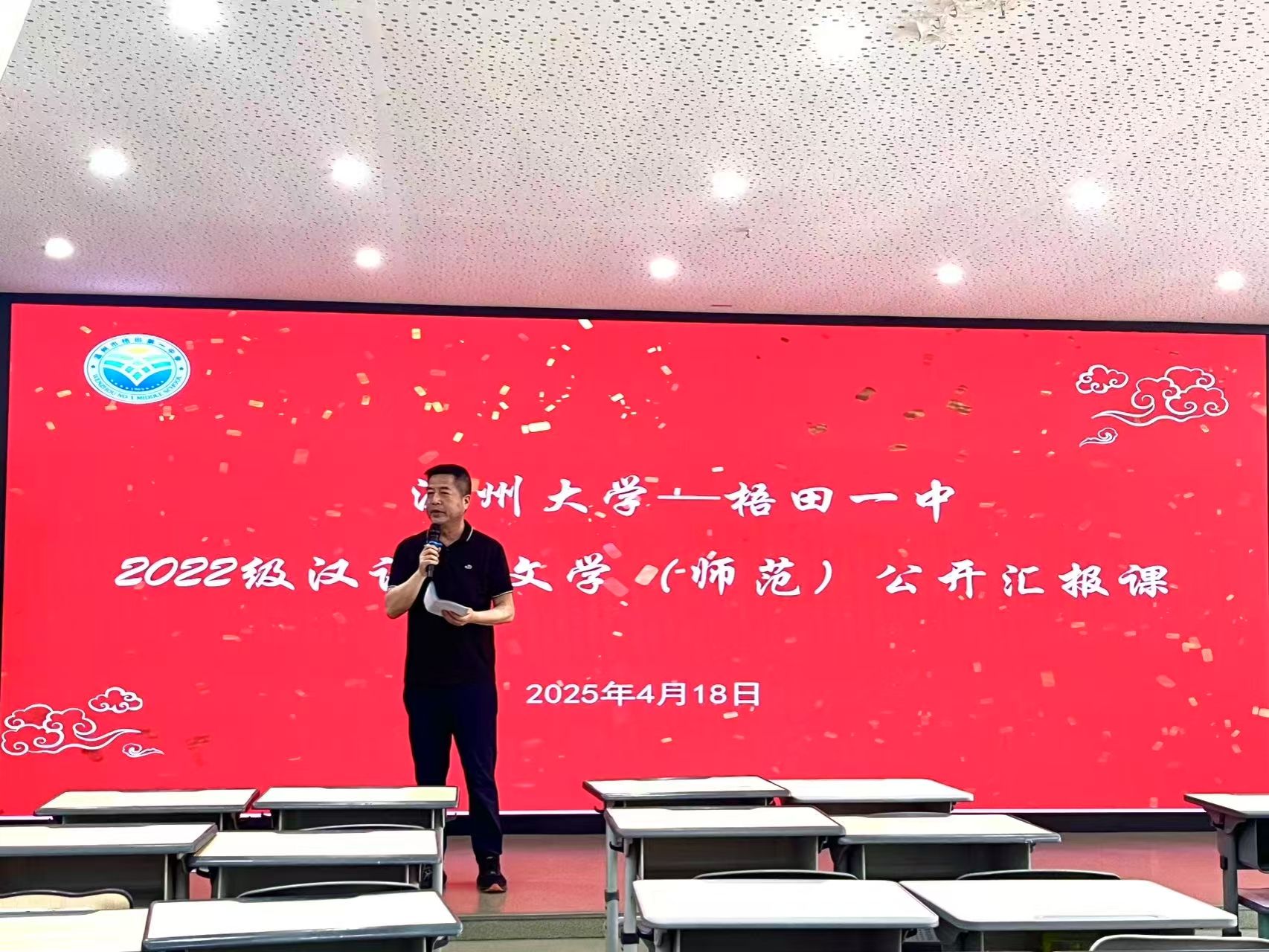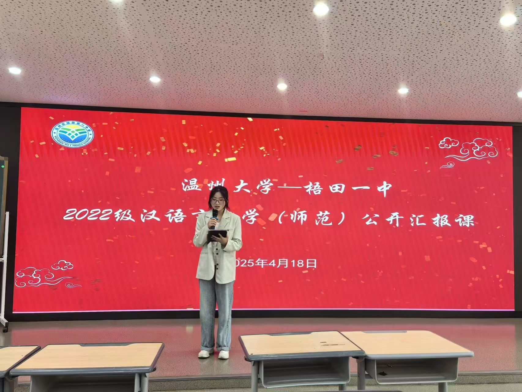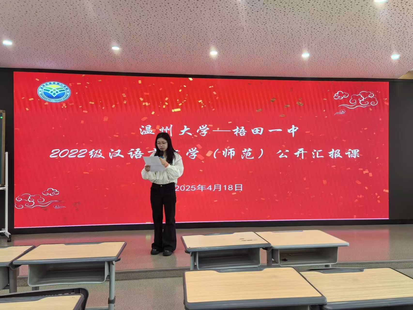 暮春之韵正悠扬,实习之旅亦收章。4月18日下午,樱花小说 选派的十七位实习生,于梧田一中顺利完成了为期两个月的实习任务,为这段实习征程画上了圆满的句号。值此实习生涯收官之际,实习生们经过精心筹备,推选代表开展了一场精彩纷呈的展示活动,全面汇报了两个月来在梧田一中实践所取得的丰硕成果。