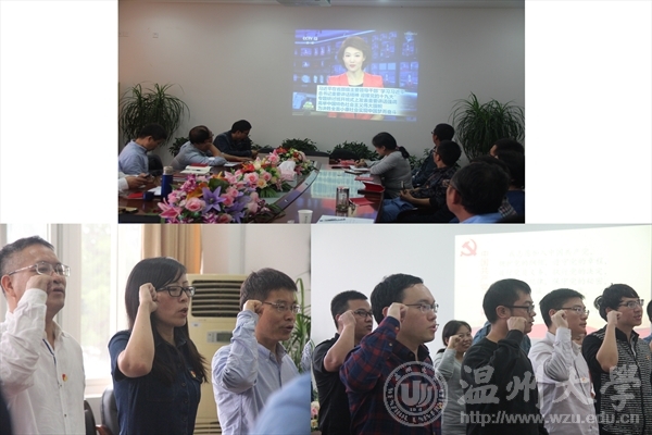 各支部根据中共温州市委组织部和学校党委的统一部署,组织全体党员教师一起面向鲜红的党旗重温入党誓词,轮流诵读学习了《中国共产党章程》、《关于新形势下党内政治生活的若干准则》、《中国共产党纪律处分条例》等党内法规的部分内容,以进一步增强党员意识、政治意识和组织纪律意识,播放并观看了央视《新闻联播》播发的习近平总书记7月26日在省部级领导干部培训班上的重要讲话以及新时期温州泽雅优秀村党支部书记潘宝良同志先进事迹等影像学习资料。