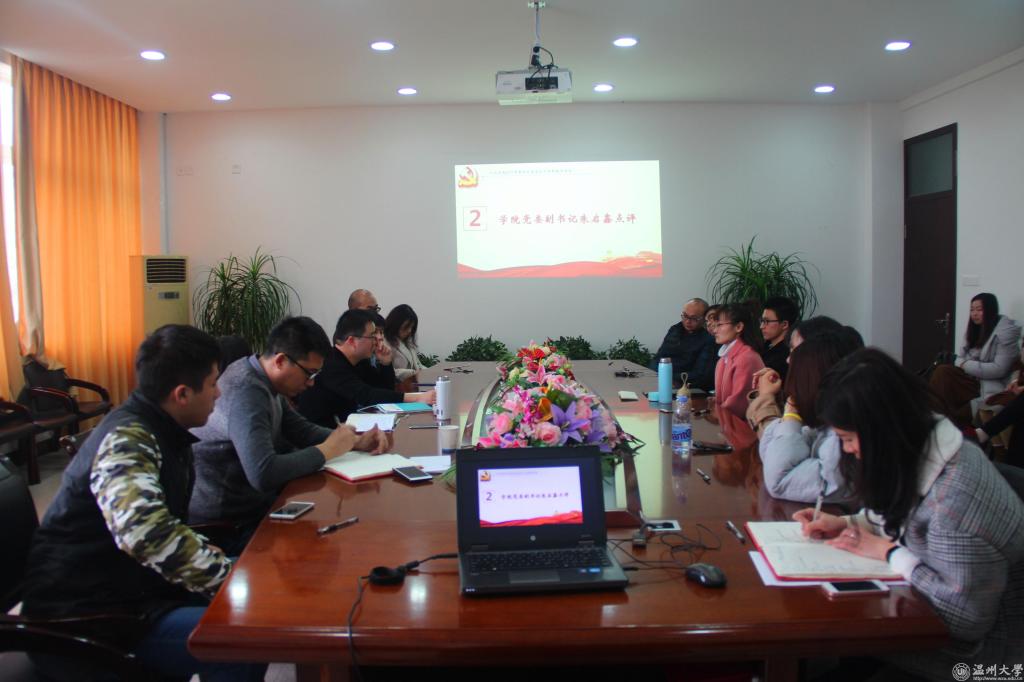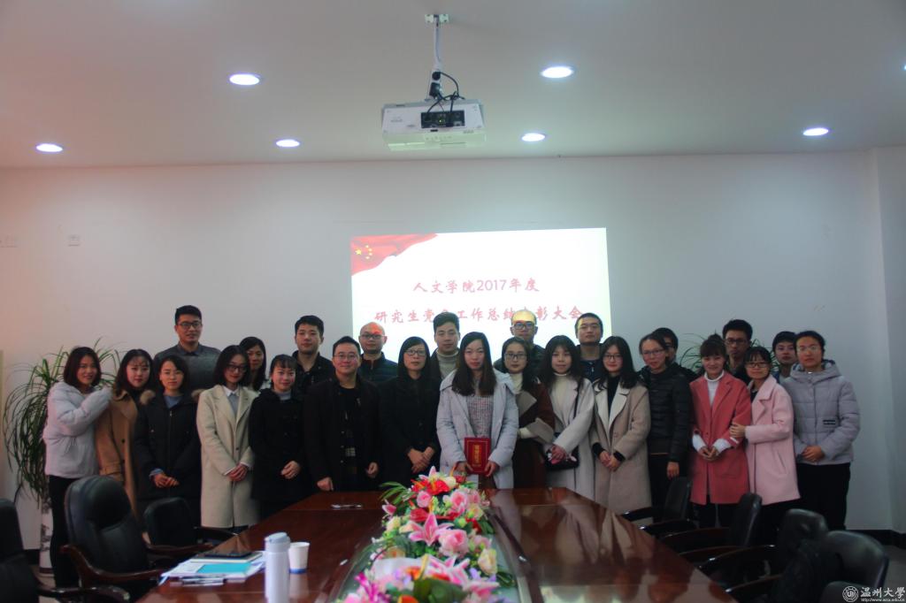 1月19日下午,樱花小说 2017年度研究生党务工作总结表彰大会在人文楼213会议室举行。参加本次大会的有学院党委书记吴静、党委副书记朱启鑫、学生科副科长刘纪峰以及部分研究生党员代表和群众代表。