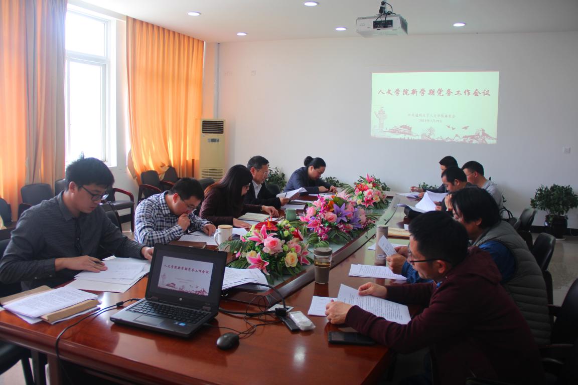 3月29日下午,樱花小说 党委在北校区人文楼213会议室召开新学期党务工作会议,学院党委成员、教工党支部书记参加,会议由党委书记吴静主持。