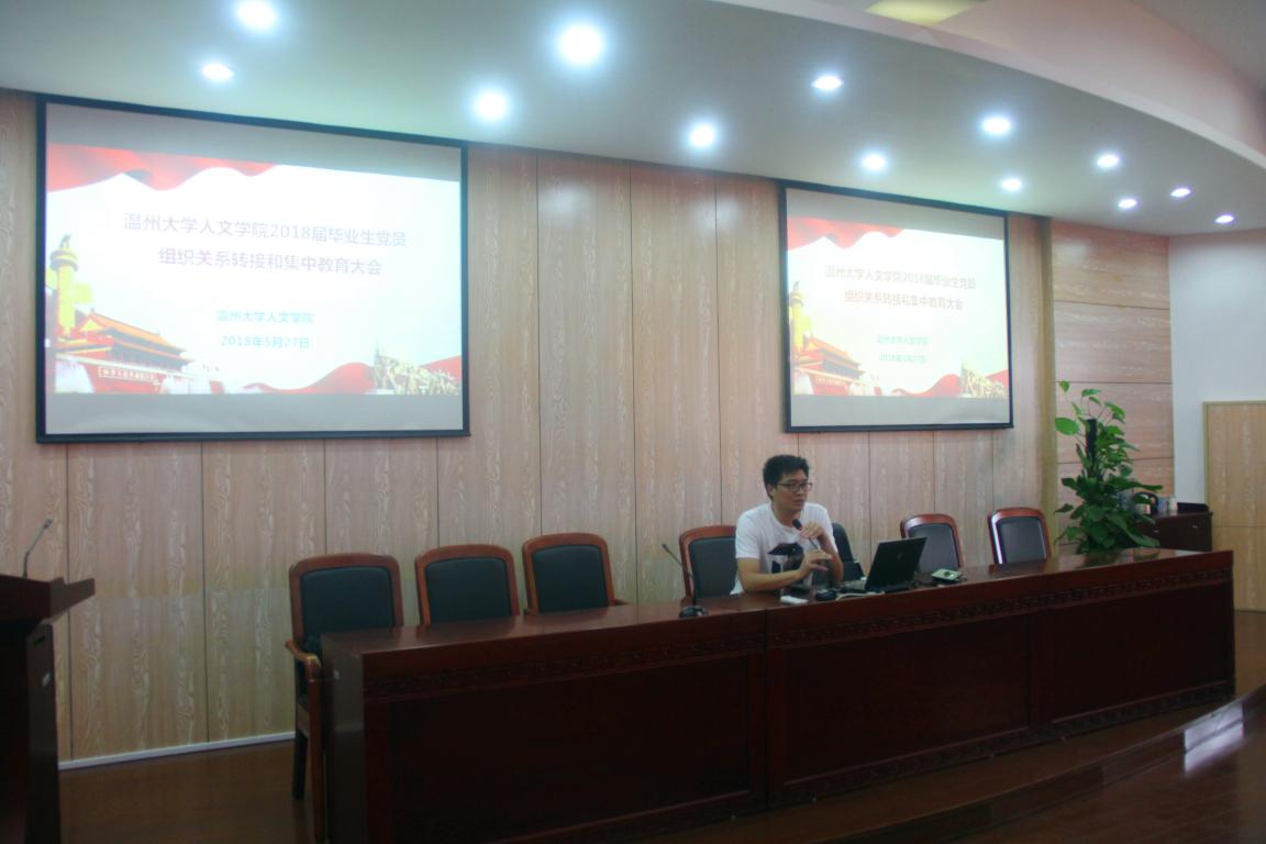 为进一步提升研究生党员的思想道德水平和党性修养,做好毕业生党员组织关系转接工作,5月27日上午,樱花小说 2018届毕业生党员组织关系转接暨集中教育大会在人文楼203学术报告厅召开。本次会议由学院学生科副科长刘纪峰主持,樱花小说 2018届全体研究生党员参加。