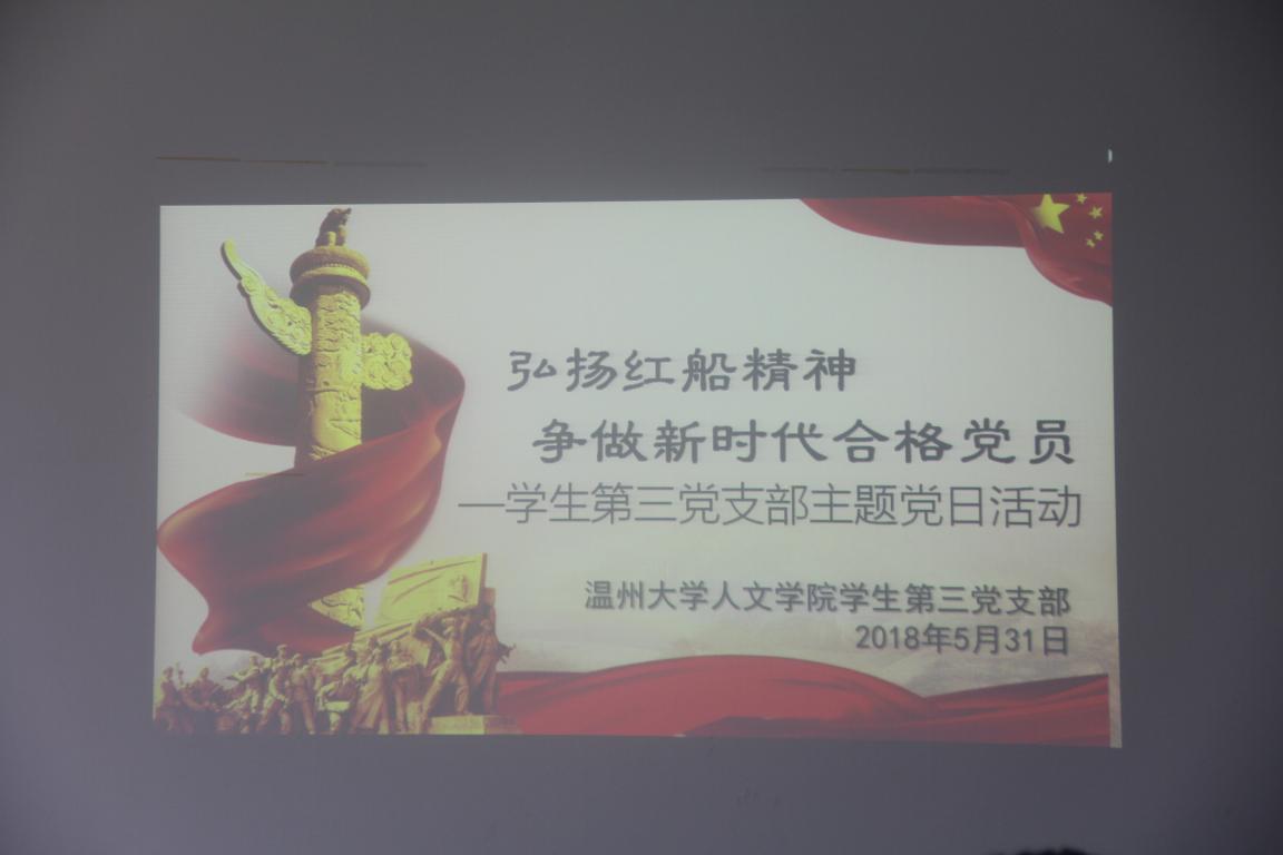 2018年5月31日下午,樱花小说 学生第三党支部携手国情党史宣讲团于北校人文楼213会议室成功举行了“弘扬红船精神 争做新时代合格党员”主题党日活动。活动由学生第三党支部书记徐珍主持,支部全体党员同志共同参与了本次主题党日活动。