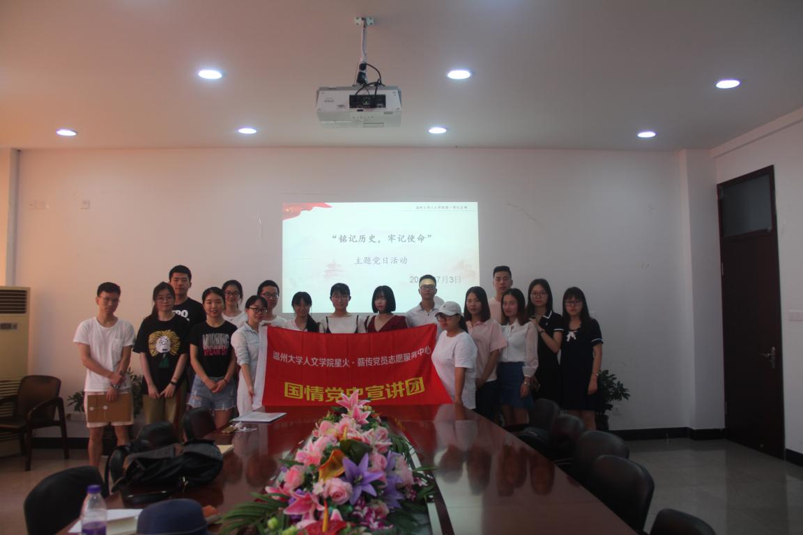 7月3日上午10点,樱花小说 学生第一党支部携手国情党史宣讲团于人文楼213会议室开展“铭记历史,牢记使命”主题党日活动,庆祝中国共产党成立97周年。本次活动由学生第一党支部书记李林军主持,国情党史宣讲团负责人赵飞跃同志宣讲,支部全体成员参与。