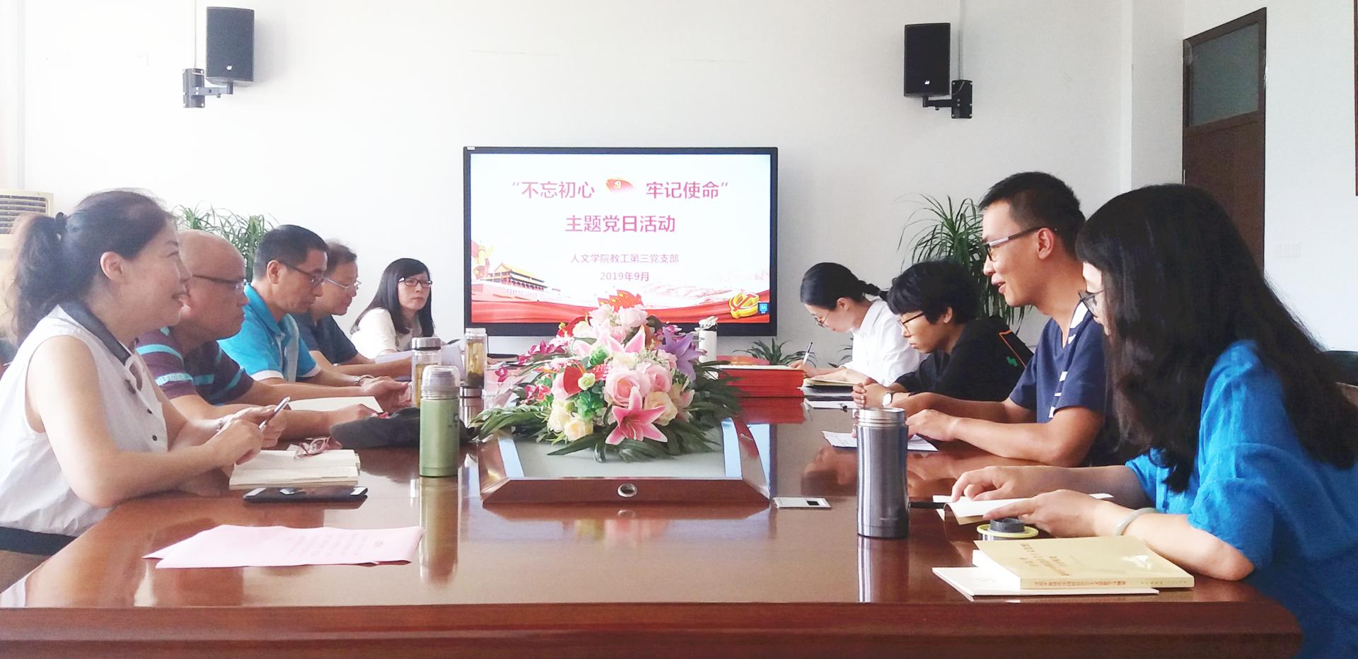 近日,樱花小说 教工第三党支部于人文楼213会议室举行“不忘初心、牢记使命”主题党日活动,樱花小说 党委书记吴静出席本次会议。本次活动由支部书记余琼主持,全体党员参与。