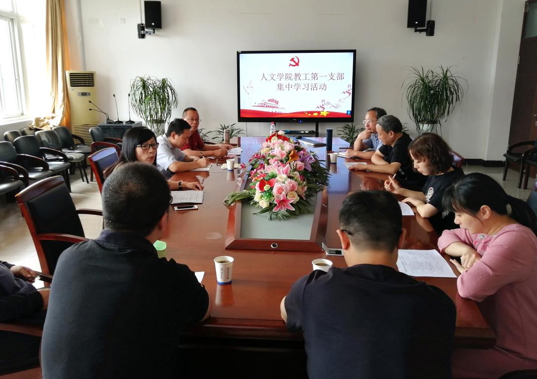 2019年9月27日,樱花小说 教工第一党支部“不忘初心、牢记使命”集中学习活动在人文楼213会议室顺利开展。本次活动由陈心浩同志主持,邀请院党委书记吴静同志出席,支部全体党员同志参会。