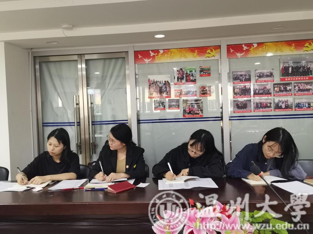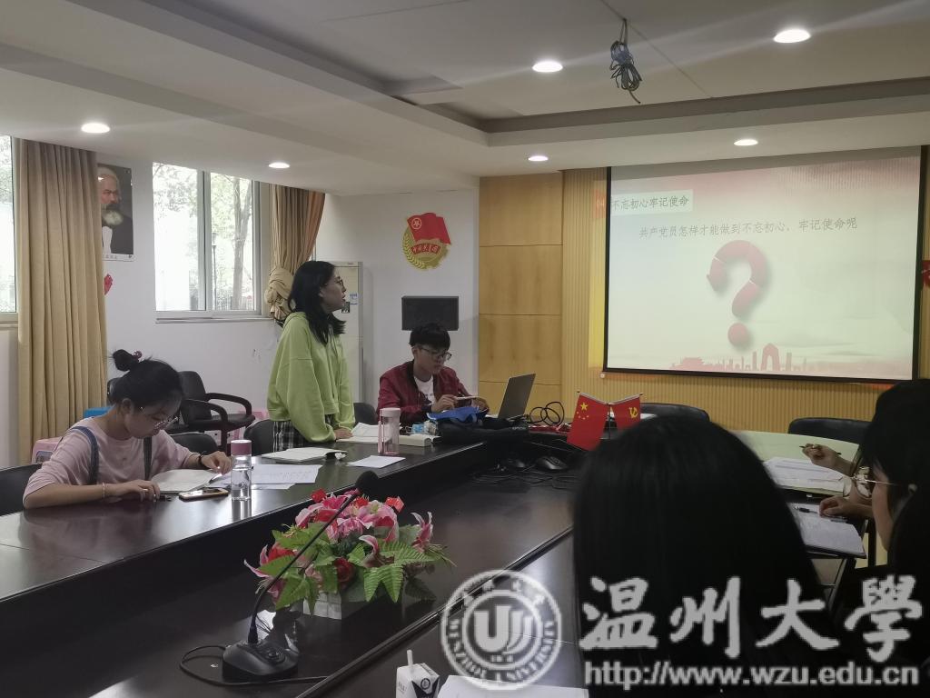 2019年10月20日中午,樱花小说 学生第四党支部的数十位党员于超豪学区四号楼党员之家举行了“守初心、担使命”主题教育活动。本次主题教育活动以党课的形式开展。