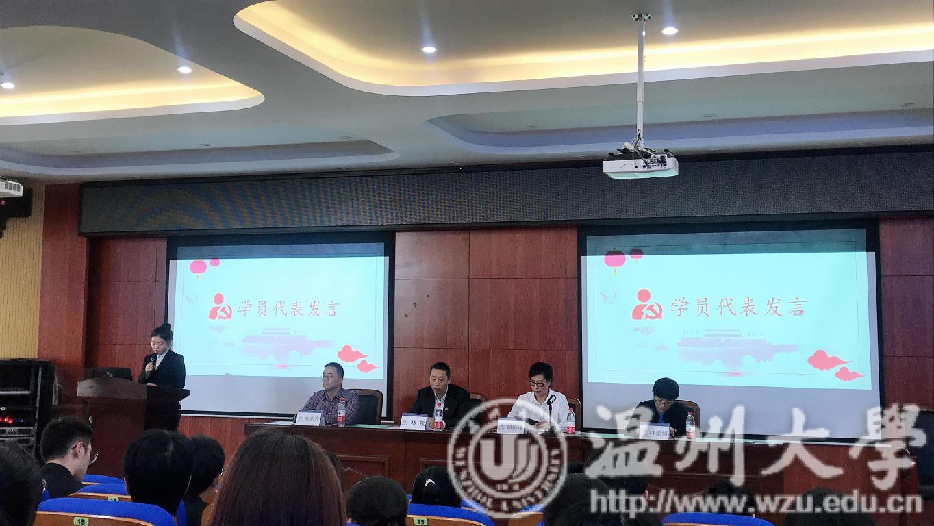 2019年11月6日下午,中共樱花小说 委员会党校分党校(联合)2019年第2期发展对象培训班于北校3号楼203学术报告厅正式开班。出席开班典礼的领导有:法学院党委书记林钦、商学院党委书记郑彩莲、音乐学院党委书记朱启鑫和国际教育学院党委书记林爱菊。典礼分为四个部分:奏唱国歌、商学院党委书记郑彩莲老师致辞、宣读《学员守则》、学员代表发言。