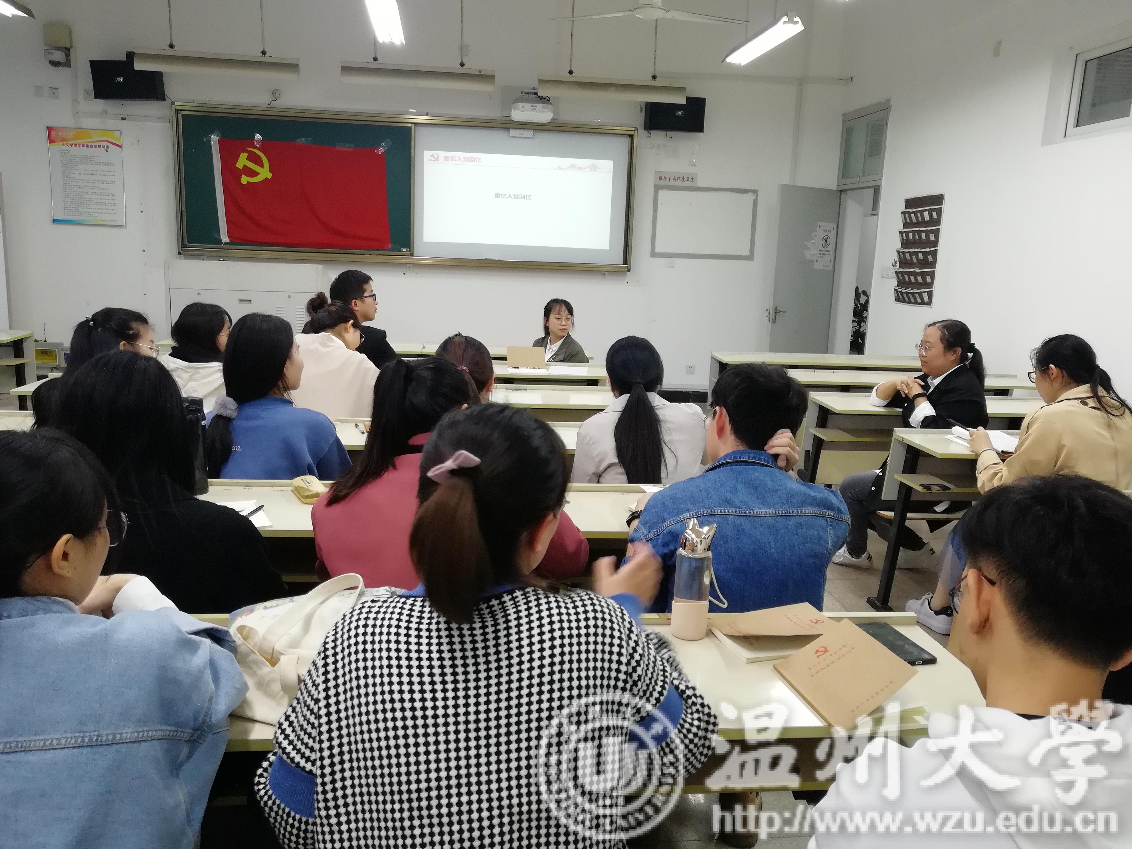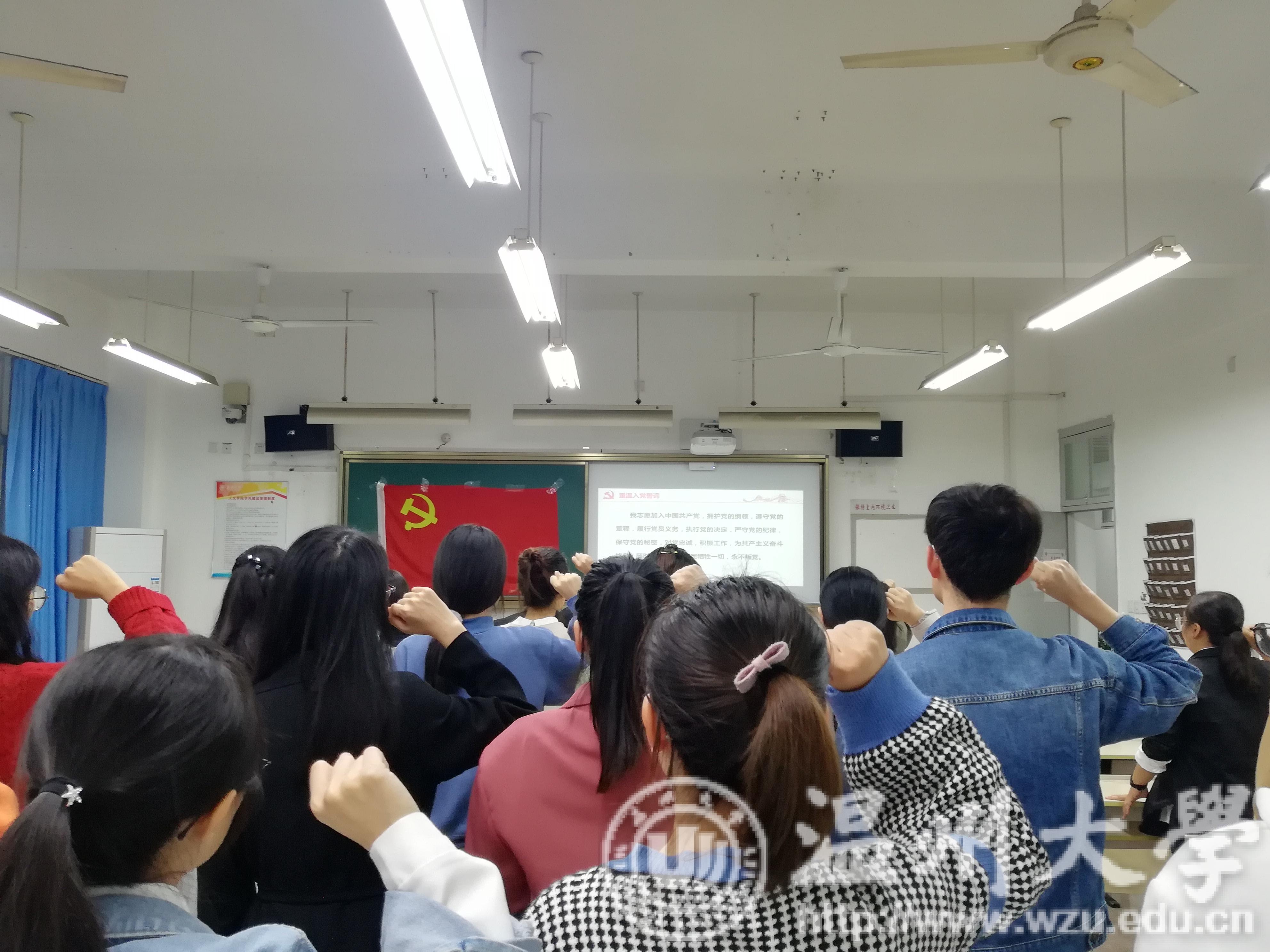 2019年11月7日,樱花小说 学生第一党支部于人文楼303教室召开“四重四敢”主题党日活动,会议由支部书记李林军主持。