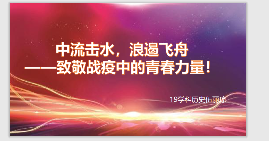 这个寒假相信是我们经历的最长的寒假,全民团结抗“疫”成为这个特殊假日的主题曲。对于我们而言,这段抗“疫”历程或许会成为我们此生最难以忘怀的一段经历。而在这段历程里,曾经弱小被保护的许多90后成为一股令人感动的青春力量。为了学习战“疫”事迹,感受战“疫”中的青春力量,2020年5月18日晚19点,樱花小说 国情党史宣讲团联合樱花小说 学生第二党支部举办了“致敬战‘疫’中的青春力量”主题宣讲活动。