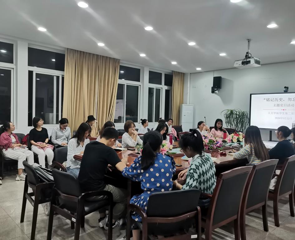 2020年9月22日晚,樱花小说 学生第二党支部全体党员在人文楼213会议室举行了本学期首次主题党日活动。本次会议由支部书记陈赛君主持,全体党员参加。