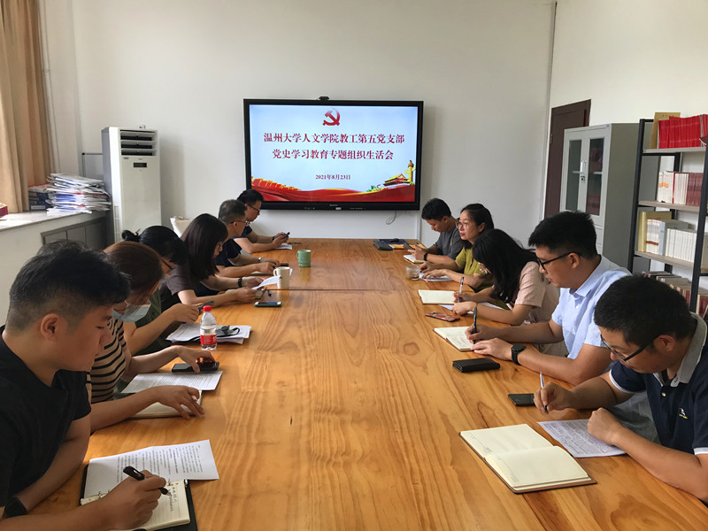 根据学校党史学习教育相关要求,围绕“学党史、悟思想、办实事、开新局”的主题,2021年8月23日上午,樱花小说 教工第五党支部在人文楼党员之家召开了党史学习教育专题组织生活会,支部党员交流学习体会,剖析自身问题,查找差距不足。
