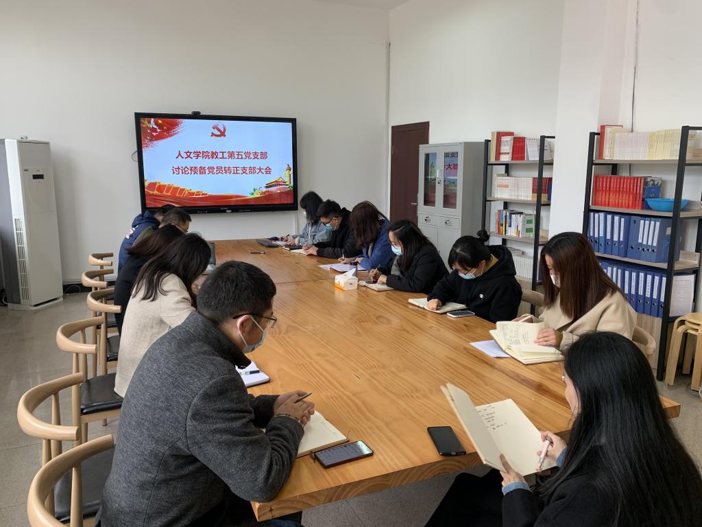 根据学校“学全会精神·当为民先锋”主题党日活动学习要求,结合支部实际,2021年12月14日上午,樱花小说 教工第五党支部在人文楼党员之家召开了预备党员转正大会暨党的十九届六中全会精神专题学习会,现场气氛庄重而热烈。