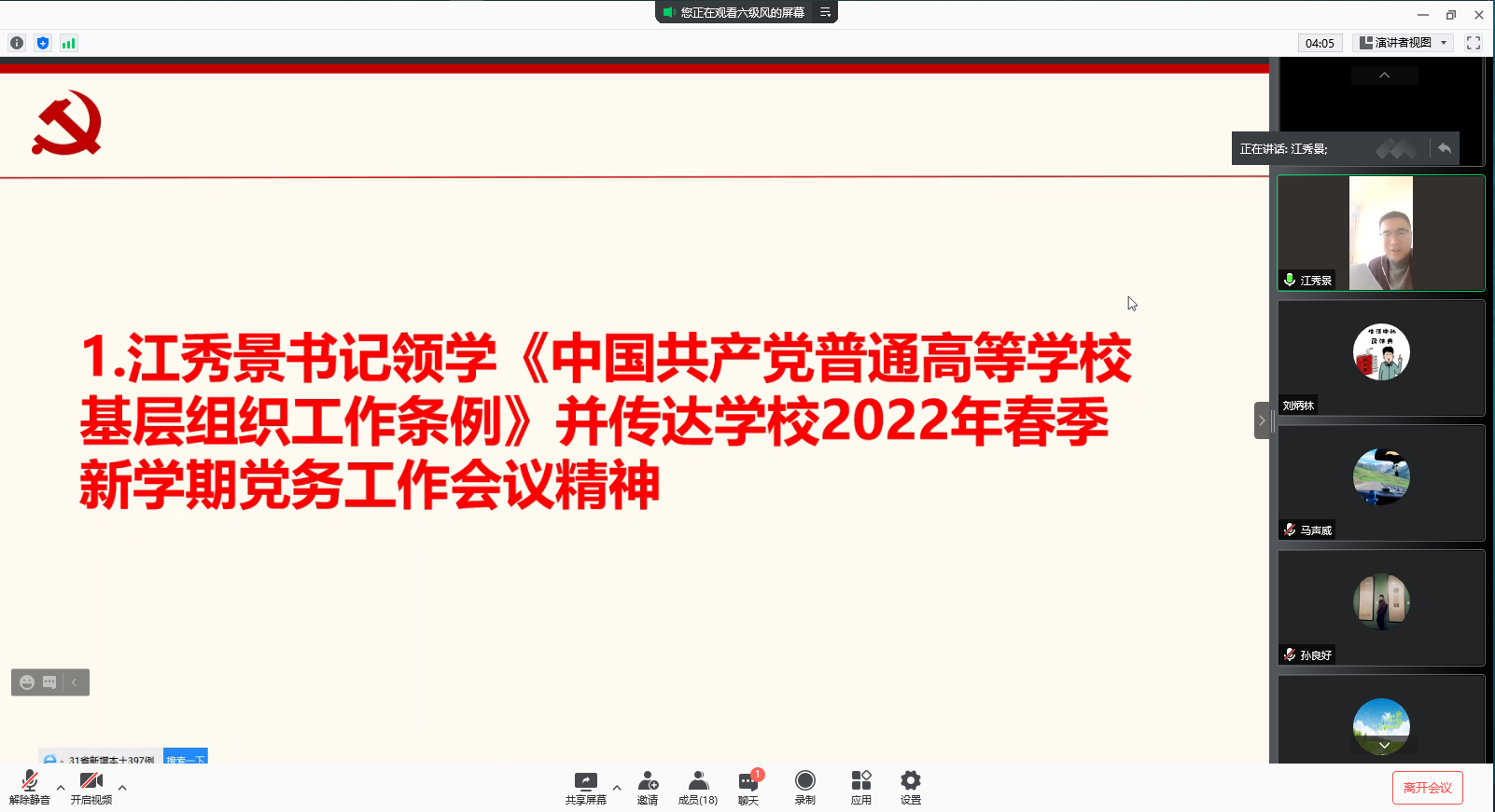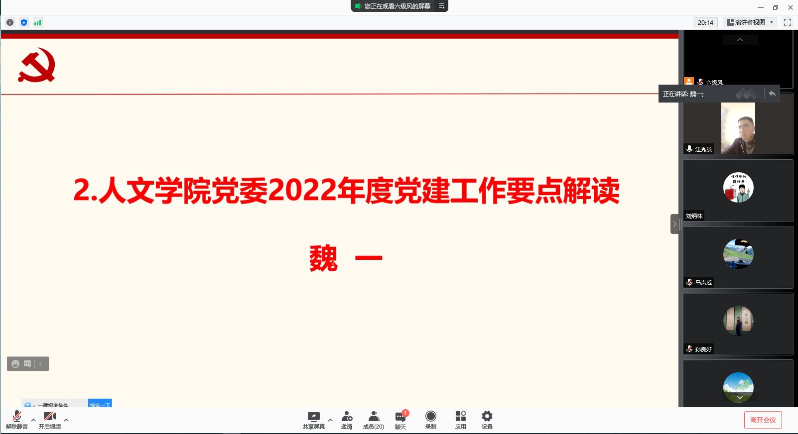 院党委副书记魏一详细解读《中共樱花小说 委员会2022年度党建工作要点》。本年度,樱花小说 党委将围绕学校年度工作主题主线,紧扣学校党建工作要点,分别从政治建设、组织基础、引领发展3个方面,持续做深做细做实14项重点工作,为学院6个“一流”建设提供强大的政治、思想和组织保证。