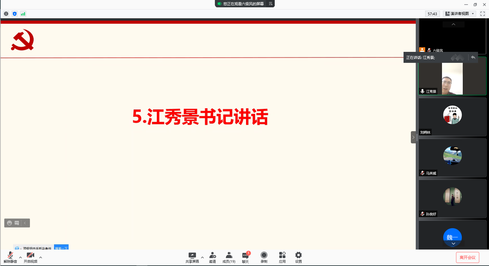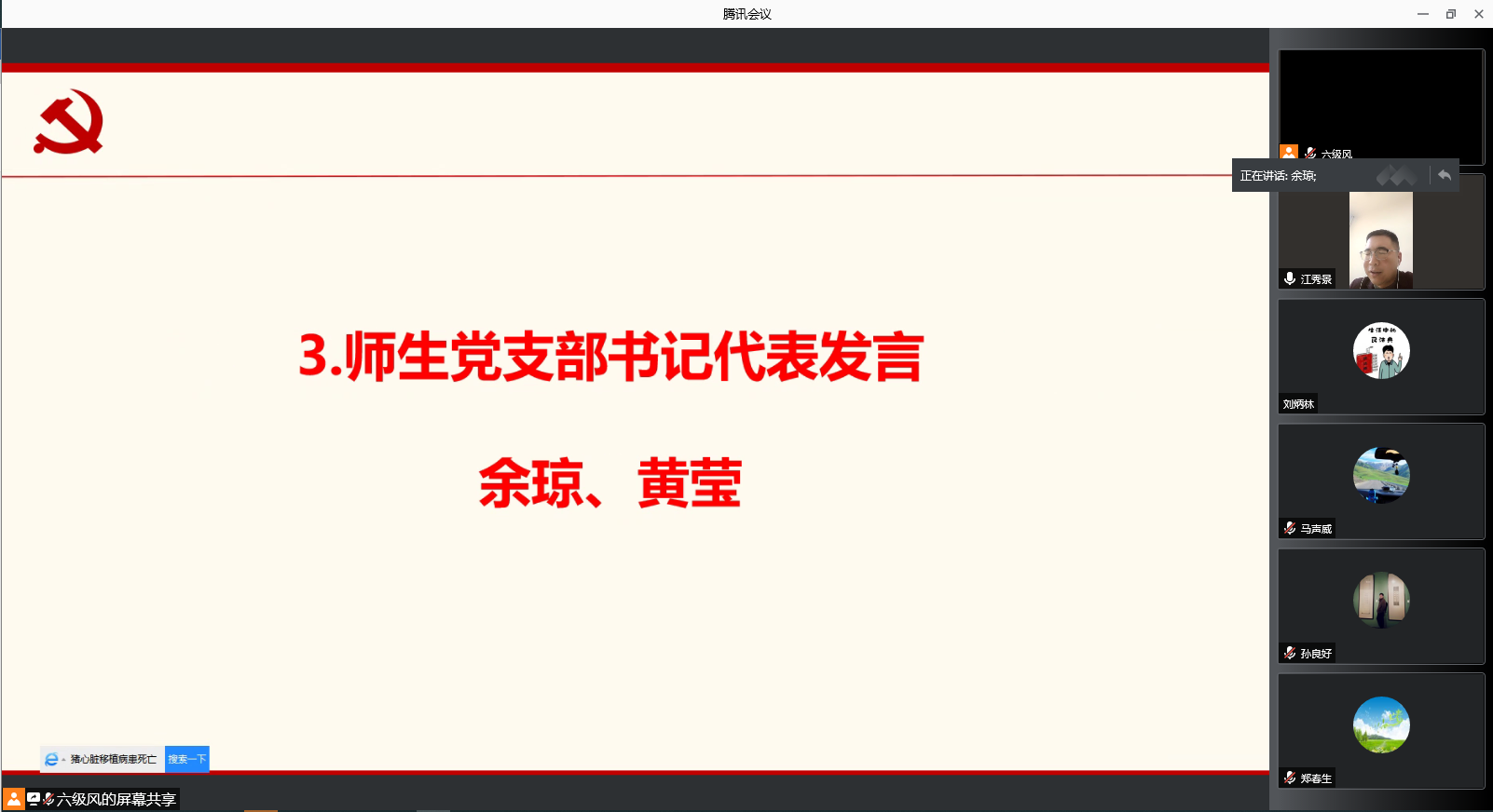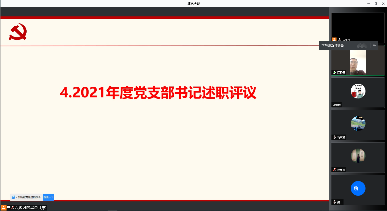 在听取了各党支部书记2021年度述职汇报后,江秀景作总结讲话。他充分肯定了各支部一年来在政治引领、组织建设、活动开展上取得的成绩,鼓励各支部书记进一步围绕学院中心工作和党建工作重点,强化书记党建第一责任人意识,履职尽责、奋力拼搏。他指出,今年正值党的二十大召开之年,同时也是习近平总书记提出办好樱花小说 殷殷嘱托20周年,希望各支部能够在保持现有成果的基础上重点做好以下几方面工作:一是理论学习要常抓不懈。做好学习贯彻党的二十大精神系列活动,高标准落实“双周三下午教师理论学习制度”。二是组织建设要持续深化。要在支部标准化、规范化上下功夫,做实党支部书记述职评议、支部达标验收、党员发展档案自查等工作。三是支部品牌要总结凝练。立足好传统、好项目,聚焦“双创”工作,按照“一支部一品牌、一支部一特色”要求,深化支部品牌创建。四是引领发展要有机融入。要切实按照《中国共产党普通高等学校基层组织工作条例》规定的教工党支部、学生党支部的工作职责,围绕学院中心工作、围绕师生所需所盼,有效组织和开展支部各项工作,形成党建工作和治理结构的有机融合。