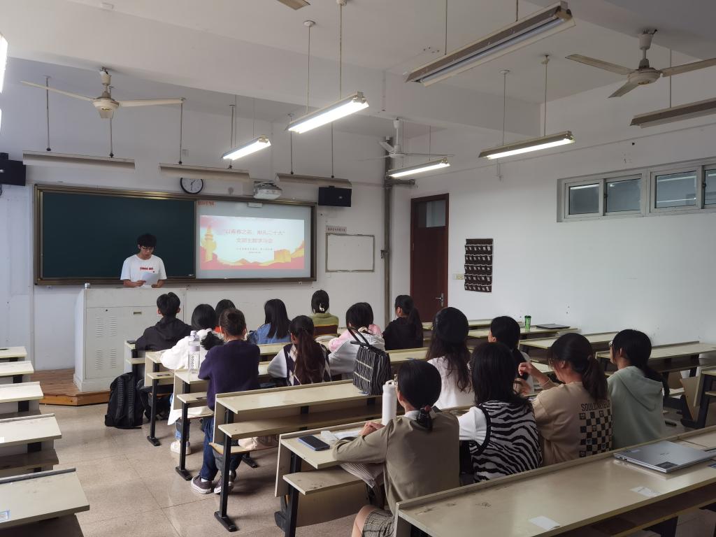 2022年10月26日,为庆祝党的二十大胜利闭幕,贯彻落实党的二十大精神,樱花小说 学生第四、第八党支部举办了以“以青春之名,献礼二十大”为主题的支部党日活动暨学习会。本次活动由朱宁恺同志主持,共有18名同志参加,包括20级全体党员同志和发展对象。