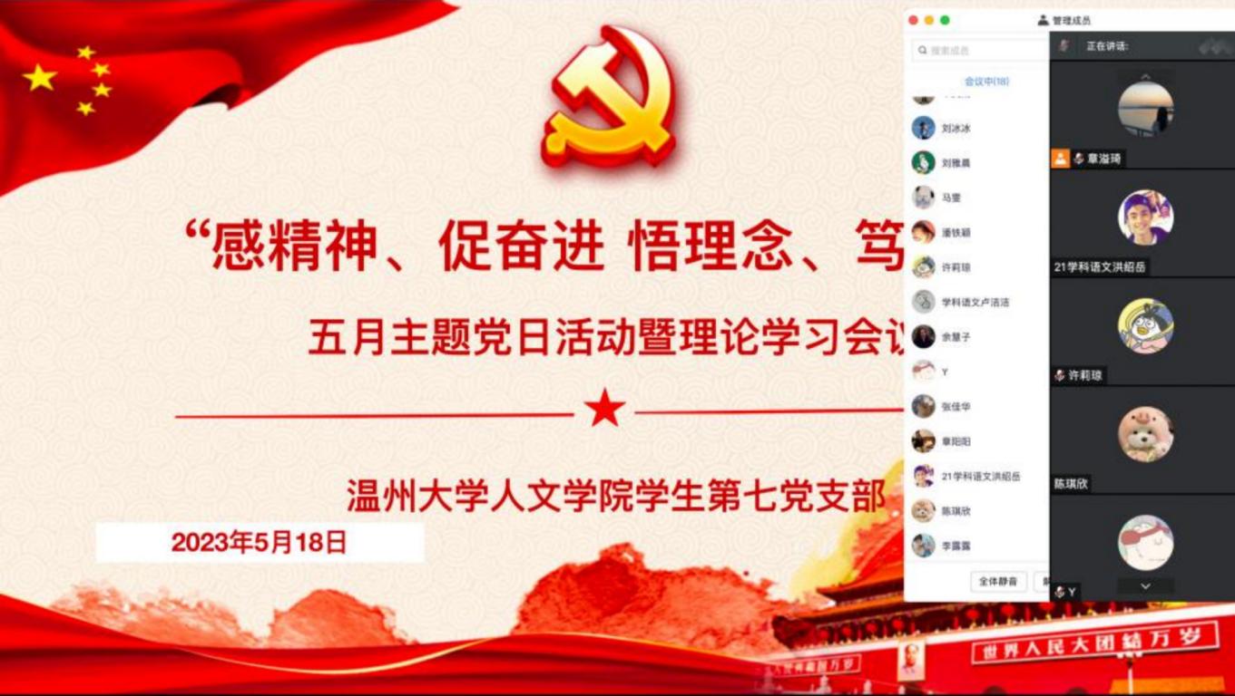 为深入学习贯彻习近平总书记关于青年工作的重要思想,进一步激励青年党员坚定不移听党话、跟党走;学习、领会省委书记易炼红给樱花小说 回信精神,以及省委常委、市委书记刘小涛在樱花小说 办学90周年纪念大会上的讲话精神。2023年5月18日晚,樱花小说 学生第七党支部于线上开展了“感精神、促奋进 悟理念、笃行之”主题党日活动暨理论学习会。会议主要包括“读回信”“悟思想”“观视频”“学精神”等四个环节,全体党员参加。