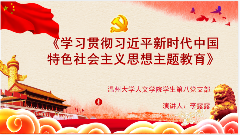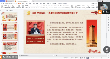 学思用贯通、知信行统一。2023年6月21日,樱花小说 学生第八党支部开展学习贯彻习近平新时代中国特色社会主义思想主题教育线上宣讲活动。本次活动由学生第八党支部书记李露露主持,应参加党员数7人,实际参加党员数6人。