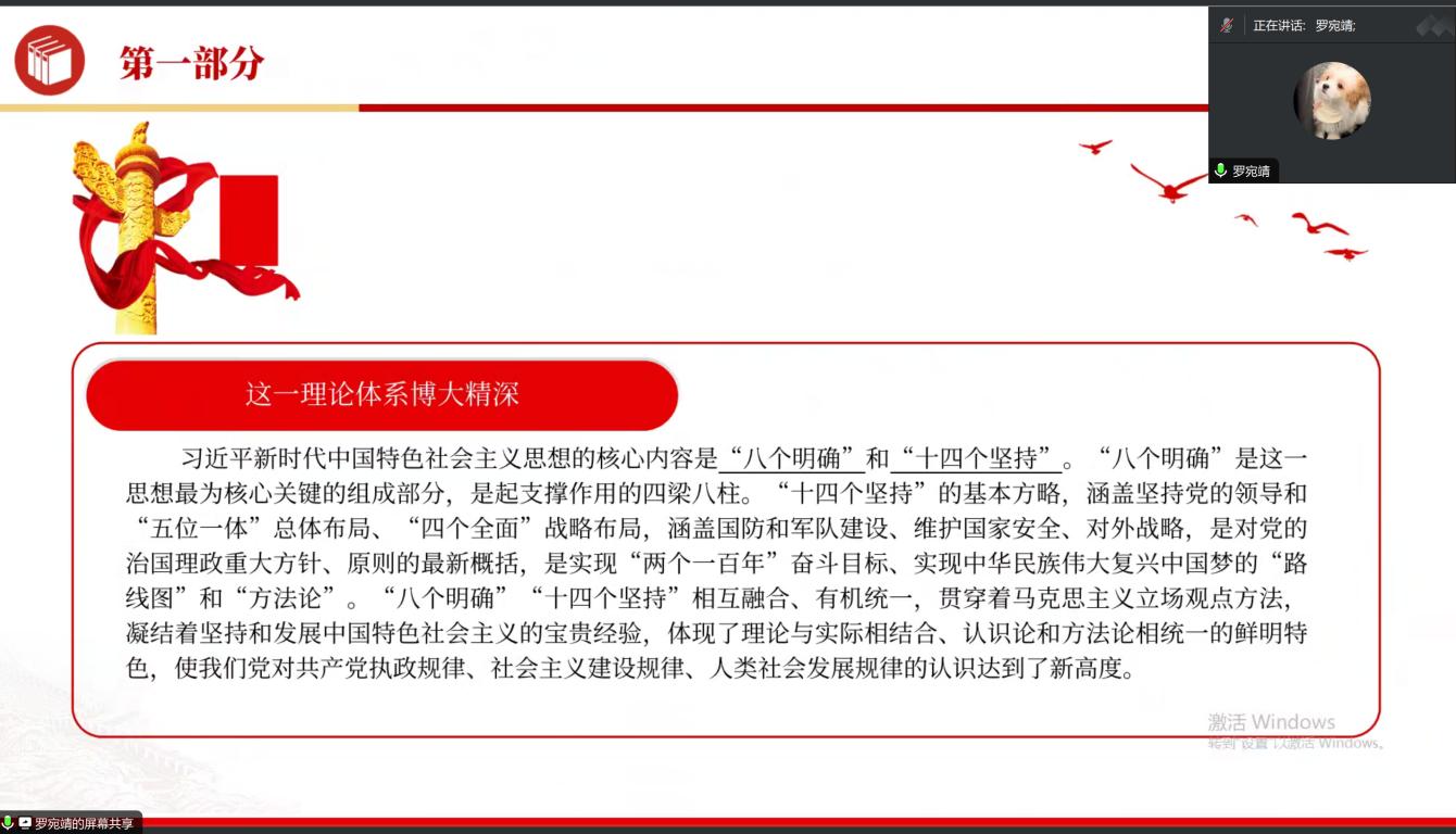 为深入学习贯彻习近平总书记考察浙江重要讲话精神,结合主题教育要求,提升党员党性修养,进一步提高党组织的凝聚力、战斗力、号召力和创造力,11月22日晚上19:30,樱花小说 学生第一党支部于线上开展了“理论武装强党性,学思践悟铸忠诚”主题党日活动。本次活动由罗宛靖同志主持,共有27名同志参加。