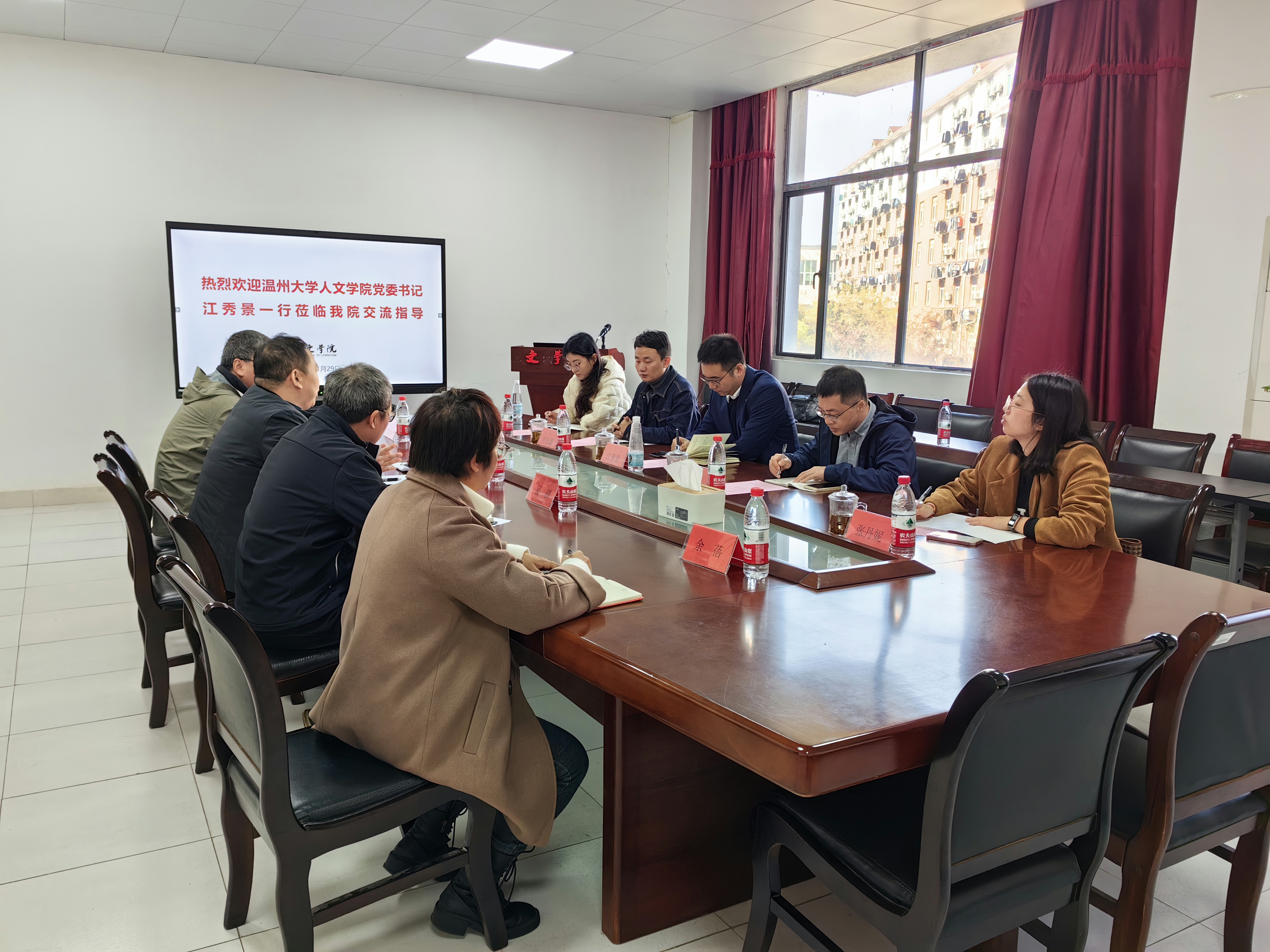 11月29日上午,一行人赴九江学院文学院进行交流学习,受到了九江学院文学院党委书记蔡飞的热情接待。一行人首先来到九江国家文化公园举行联合党日活动,深受习近平总书记扑下身子干实事、谋实招、求实效的调查研究行动鼓舞。随后,一行人来到九江学院文学院进行座谈交流,会上主要就校史校情、党建品牌、校友工作与学生升学就业工作等进行了积极探讨,达成了一定的共识。
