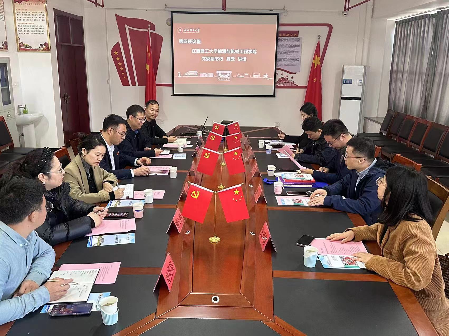 11月28日下午,一行人来到江西理工大学能源与机械工程学院进行交流学习。座谈会上,院党委书记饶先发介绍了学院发展概况以及学院在学生工作方面取得的成绩,学院党建组织员李婷、学工办兼团委负责人郭峰、辅导员董玉婷、辅导员杨毅、辅导员曾亮亮分别从各自负责的工作模块分享主要做法及经验。