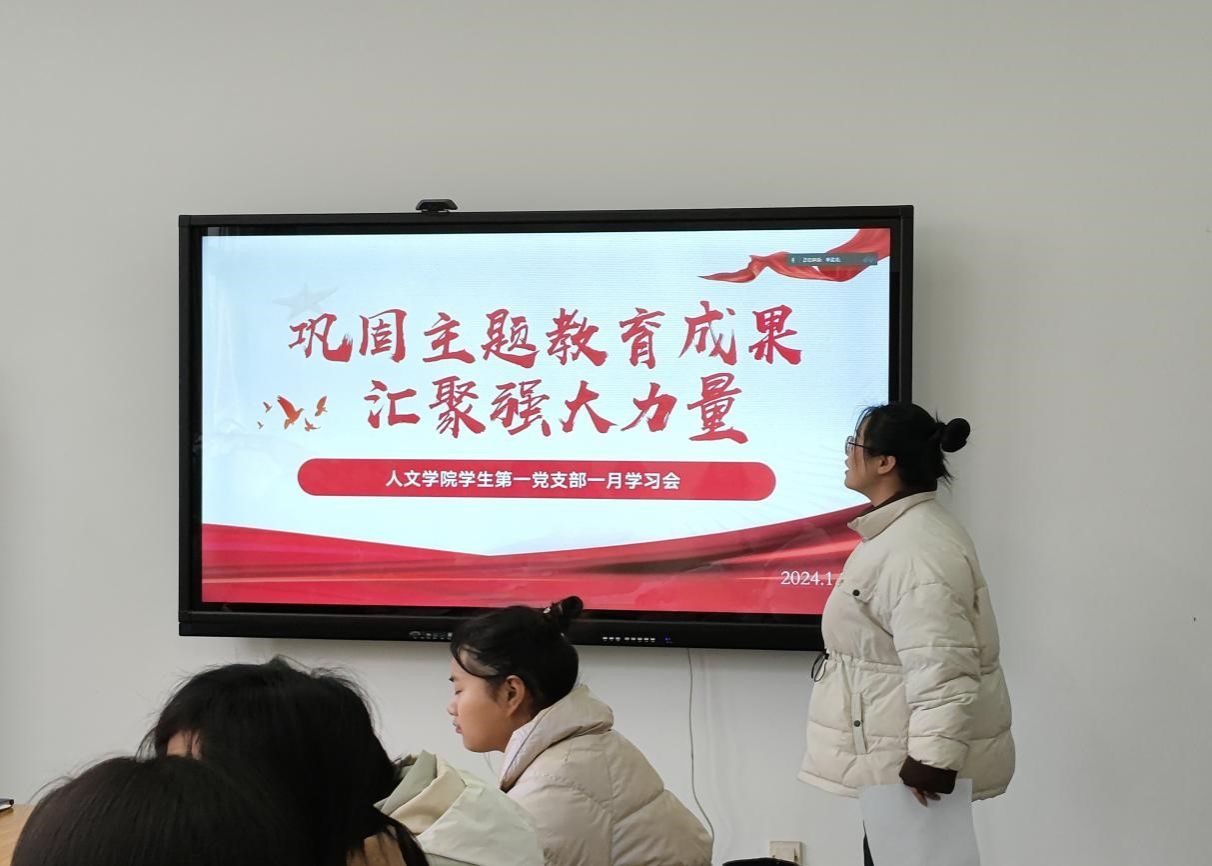 中共中央政治局于12月21日至22日召开学习贯彻习近平新时代中国特色社会主义思想主题教育专题民主生活会。为学习习近平总书记在会议上的重要讲话,深刻领悟中央政治局专题民主生活会精神,1月8日下午15:10,樱花小说 学生第一党支部于人文楼214党员之家开展了以“巩固主题教育成果,汇聚强大力量”为主题的一月主题学习会。本次活动由袁璐婷同志主持,支部全体党员同志参加。