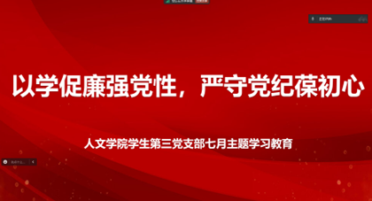 为全面加强党的纪律建设,确保全党目标一致、团结一致、步调一致,深入学习贯彻习近平总书记关于全面加强党的纪律建设的重要论述,樱花小说 学生第三党支部于7月15日晚上19:00在线上召开了“以学促廉强党性,严守党纪葆初心”主题学习会暨七月主题党日活动。