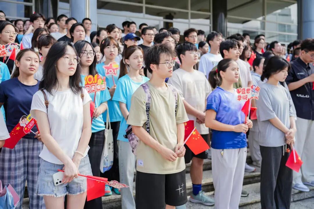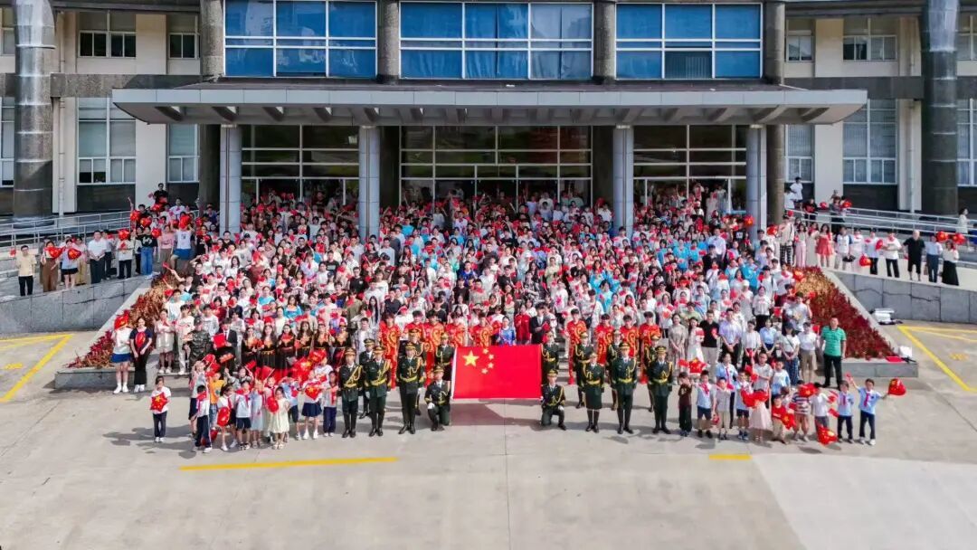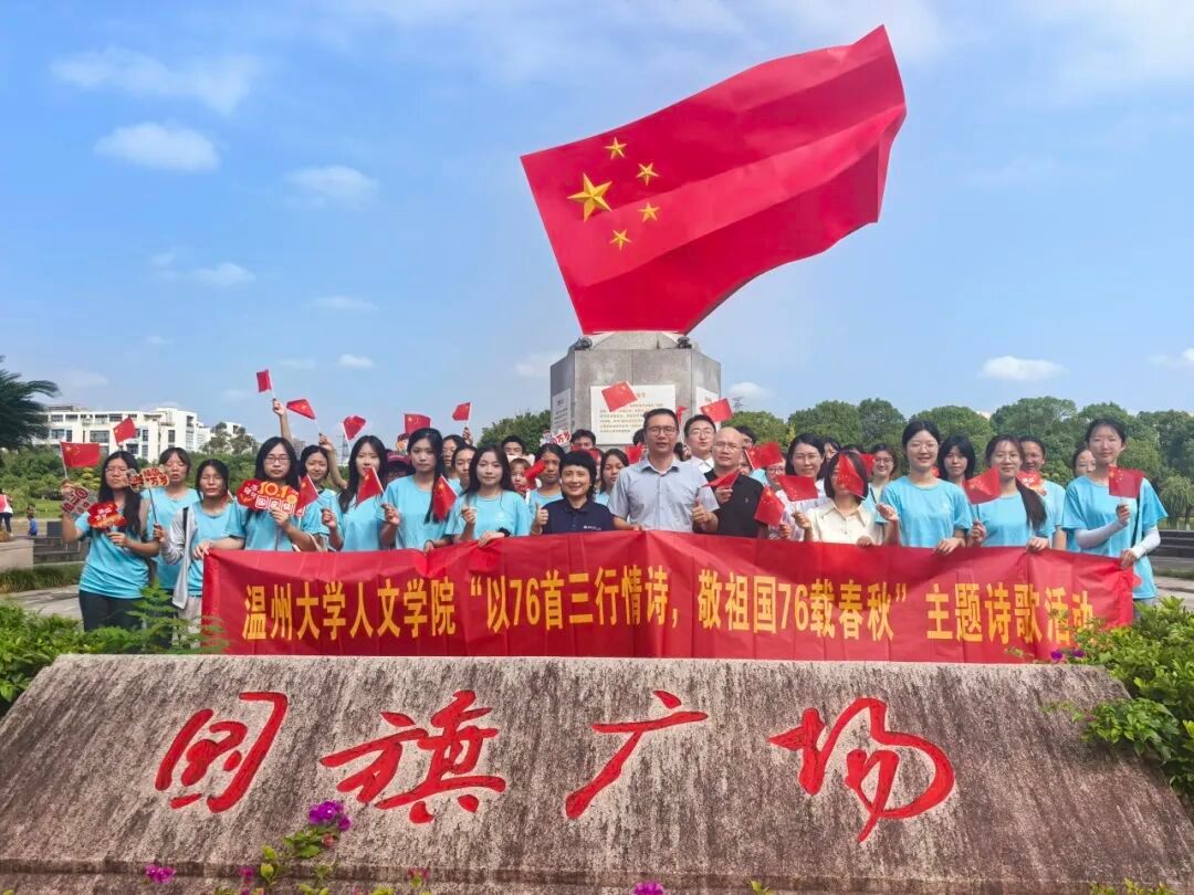 除了本次线上的情诗征集活动以外,樱花小说 的师生代表们一同参与了学校组织的新中国成立76周年暨抗战胜利80周年升旗仪式,并于南校区国旗广场前合影留念。