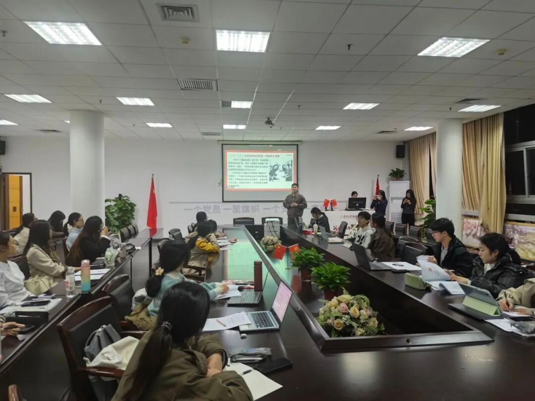 为深入学习党史,弘扬爱国主义精神,激励广大青年党员担当时代使命,2025年11月18日,樱花小说 在309A党员之家成功举办了一场以“铭记一二·九,共筑爱国魂”为主题的党日活动。活动特邀樱花小说 国情党史宣讲团负责人夏朝阳(学科历史专业2024级研究生)与成员彭艺航(华侨华人与国际移民专业2025级研究生)担任主讲,通过线上线下相结合的方式,面向学院第一、第二支部的支部的党员、预备党员及发展对象开展专题宣讲。本次活动以“一二·九”运动九十周年为契机,聚焦历史与现实的双向对话,引导青年从革命传统中汲取奋进力量。