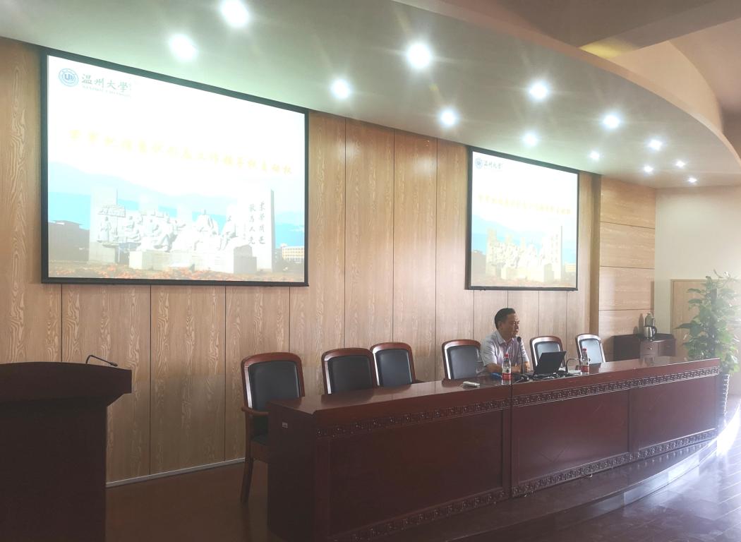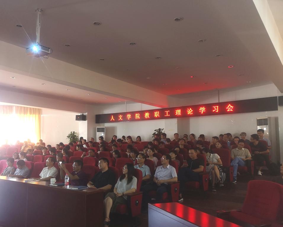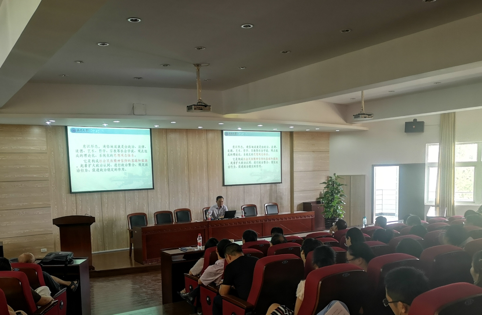 9月19日下午,樱花小说 在人文楼203会议室召开新学期全院教工理论学习会,邀请校党委委员、宣传部部长潘玉驹教授做《牢牢把握意识形态工作领导权主动权》专题讲座,学院班子及全体教职工参加学习。