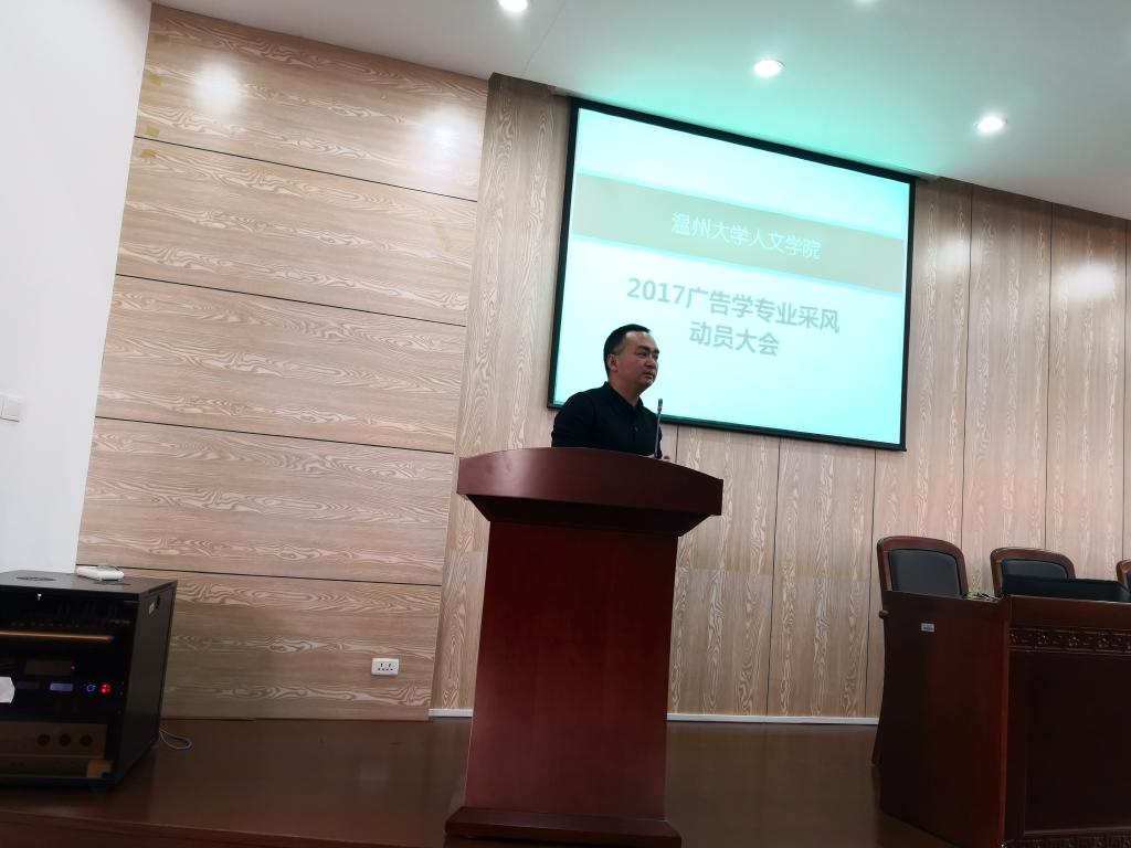 2018年10月24日13时,17广告学专业采风动员大会在人文楼203会议室准时展开。樱花小说 副院长刘建国,广告专业负责人徐卫华,专业采风带队教师颜志香、黄薏文以及17级广告学专业全体学生出席了本次活动。